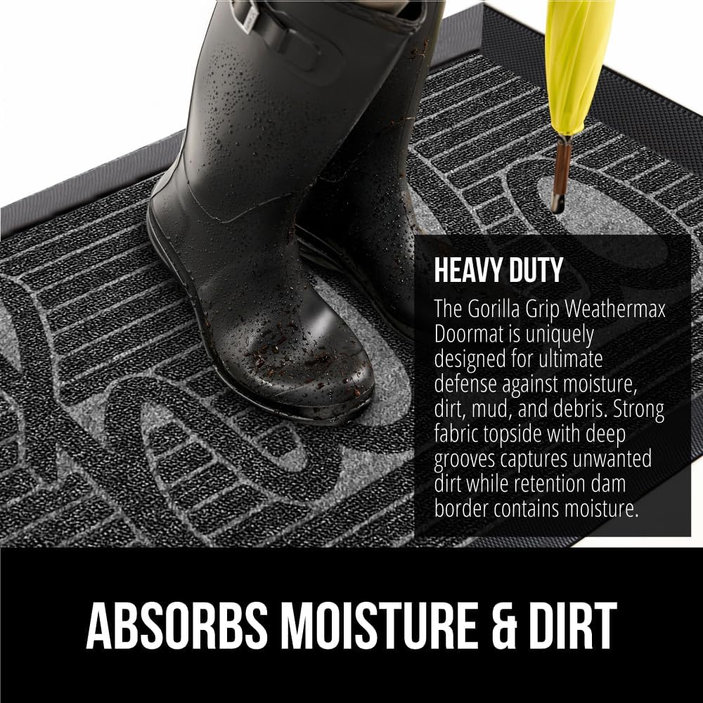 • THE ORIGINAL WEATHERMAX ALL SEASON DOORMAT: Gorilla Grip's Original WeatherMax doormat is built tough with a heavy duty, yet soft and flexible construction; deep grooves, beveled rubber border and retention dam help capture dirt, debris and moisture
