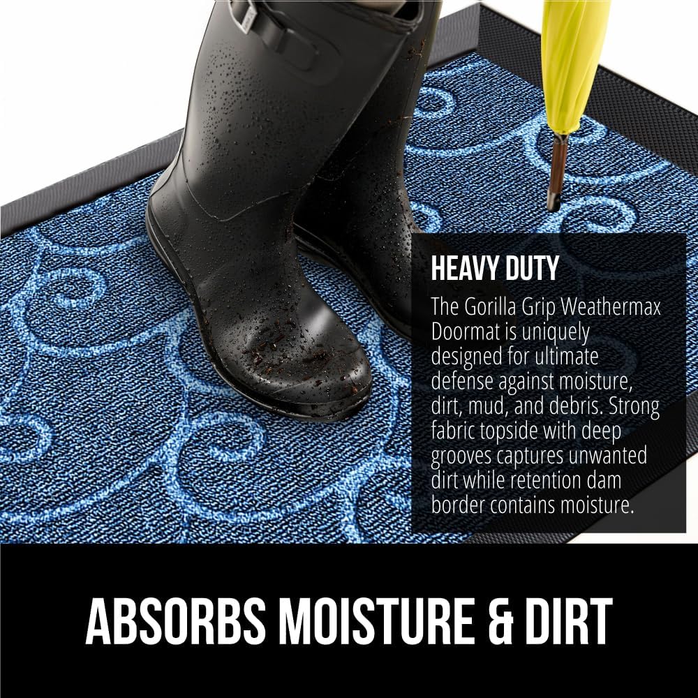 • THE ORIGINAL WEATHERMAX ALL SEASON DOORMAT: Gorilla Grip's Original WeatherMax doormat is built tough with a heavy duty, yet soft and flexible construction; deep grooves, beveled rubber border and retention dam help capture dirt, debris and moisture