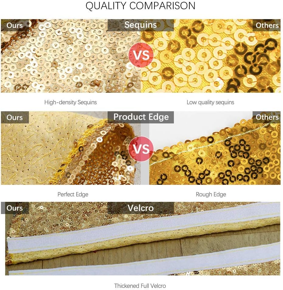 • Sparkly Tree Skirt Material: High-density 3MM sequins with satin mesh,extremely well made. This tree skirt will NOT FALL OFF and NOT SEE THROUNGH.