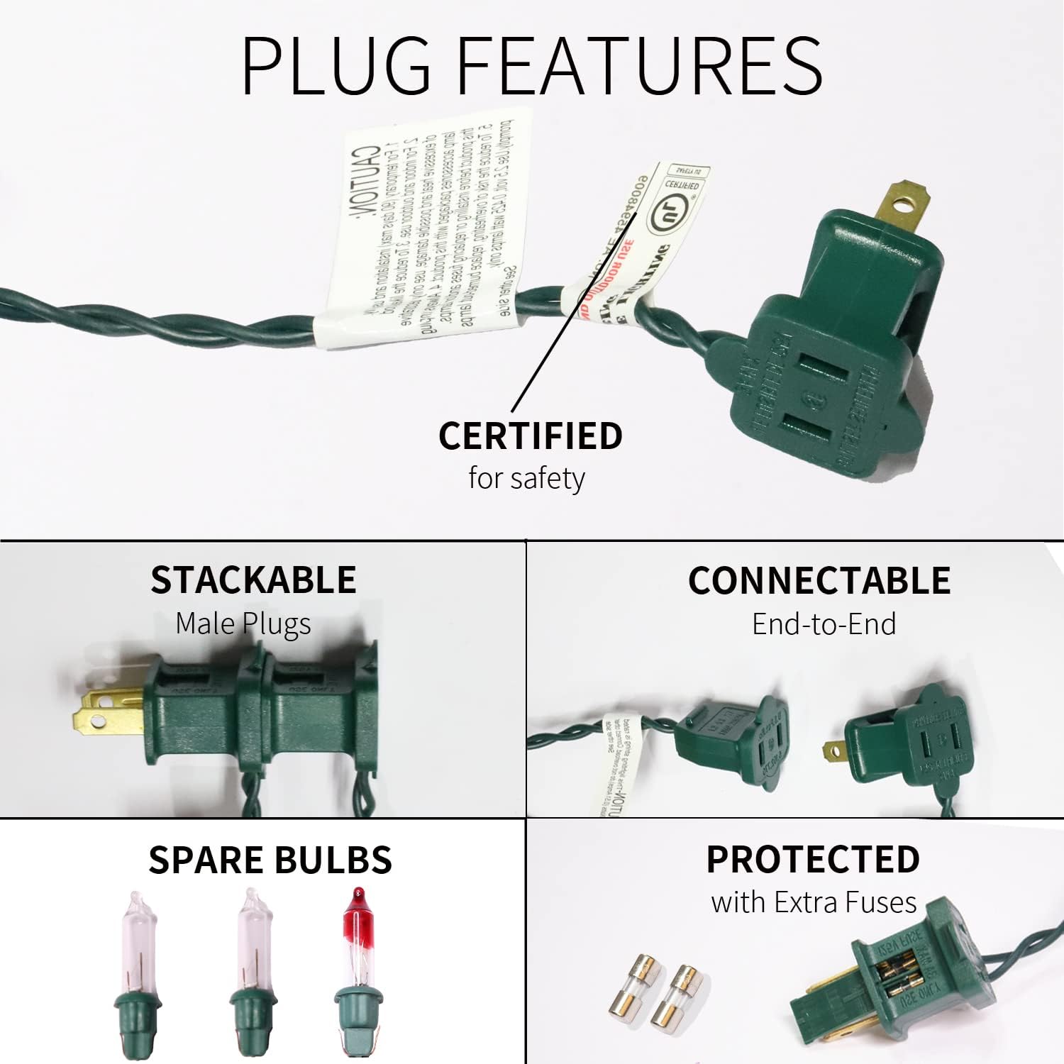 • Safty and Easily: High quality UL certified products ensure the safety of you and your family, Decorate with 100 clear incandescent mini lights with green wire will give a soft festive feel to your Christmas.