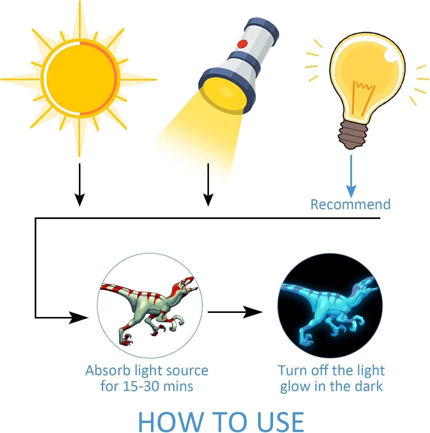 • 🦖【Easy to Apply】The glow sticker wall sticker sticks firmly to the wall without glue or tape. Also suitable for tables, switches, etc. No trace is left after removal.