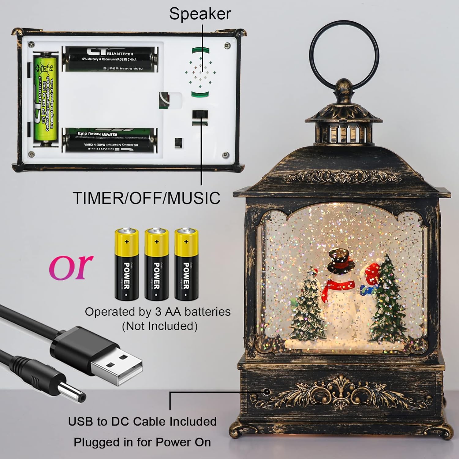 GenSwin Christmas Snowman Snow Globe Lantern Battery Operated Water Swirling Glitter with 6H Timer, Musical LED Lighted Scene for Christmas Home Decoration Gift