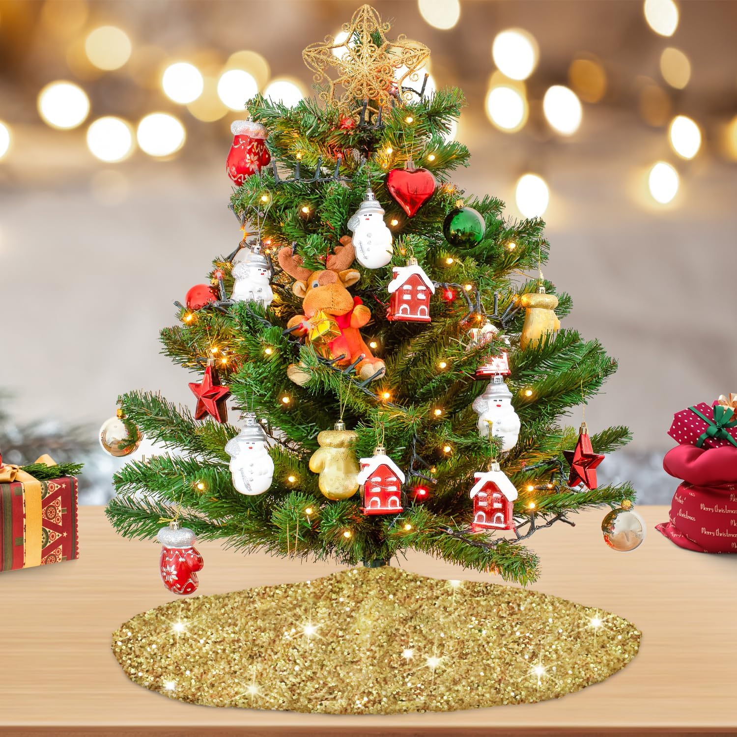 • ❄️【Size Detail - Metallic Tree Skirt】You will receive a 21 inches diameter gold glitter sequin tree skirt, fits under 3 foot tall trees. You can put some gifts, Christmas boxes, christmas ball on the xmas tree mat. The sparkle velvet Christmas tree skirt is perfect for decorating your home and become part of your holiday tradition.