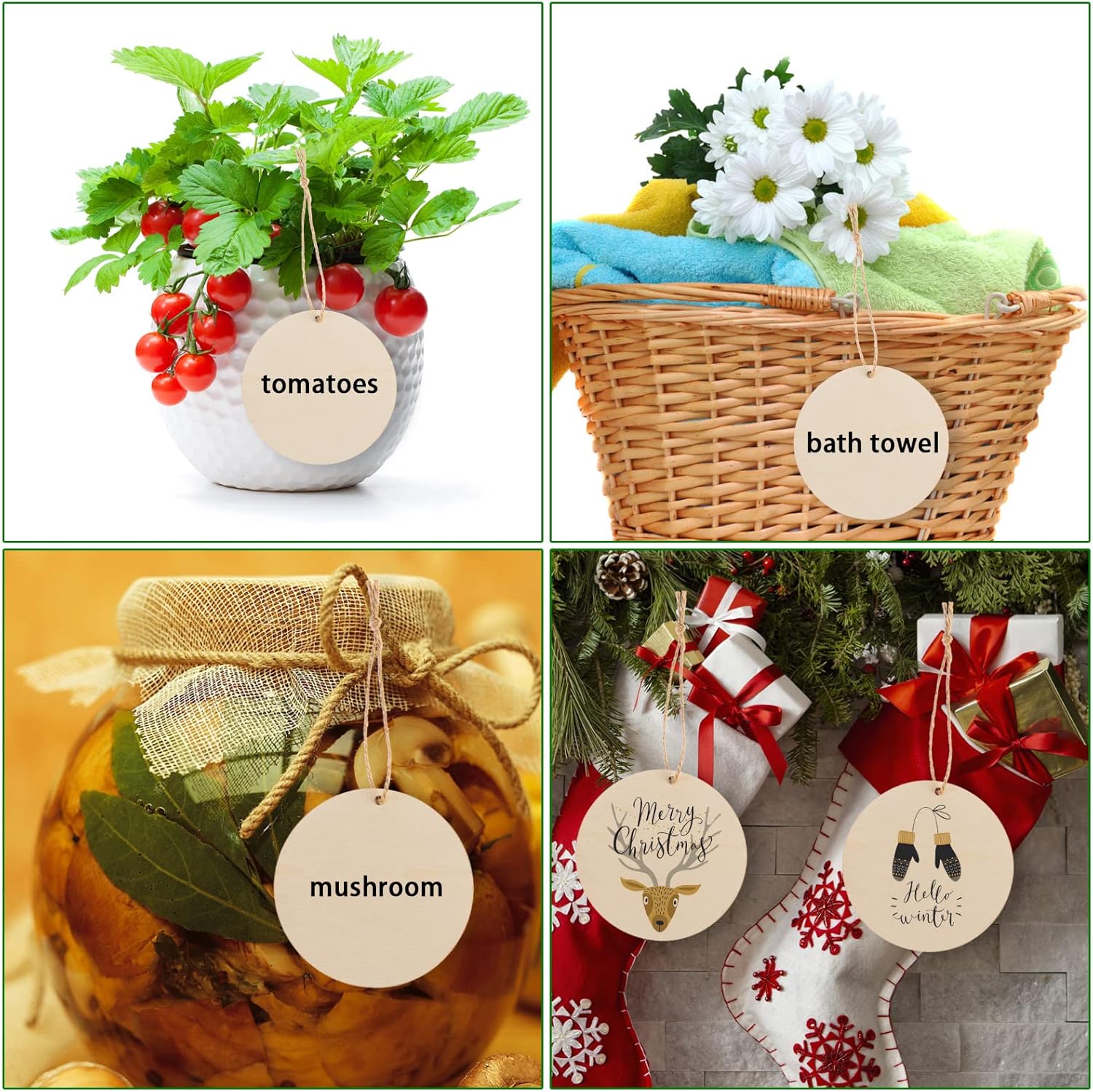 • Fun to DIY: the round wooden tags are designed with a blank smooth surface, you and your children can stain or paint on the wooden disc, make different styles of handmade tags, present tags or holiday decorations for your family members and friends.