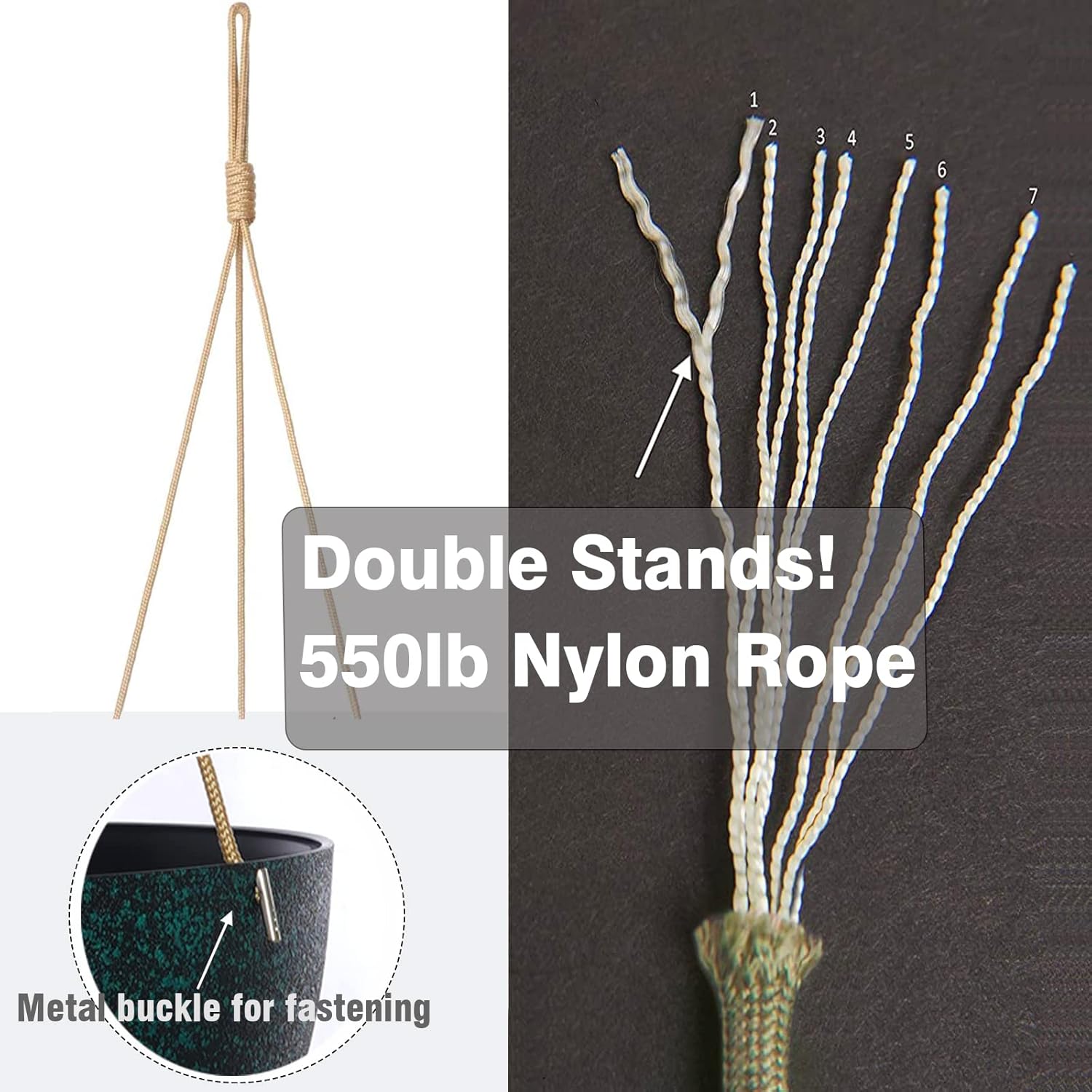 • [Adjustable Hanging Rope] Crafted from durable plastic with adjustable high-strength nylon rope, the pots are lightweight yet sturdy for easy transport. The hanging rope is made of sturdy nylon rope with excellent elasticity, you can freely adjust the height you want, the full nylon construction provides abrasion resistance, it can easily hang plants weighing up to 20 pounds without taking up any floor space, and take your plants to new heights.