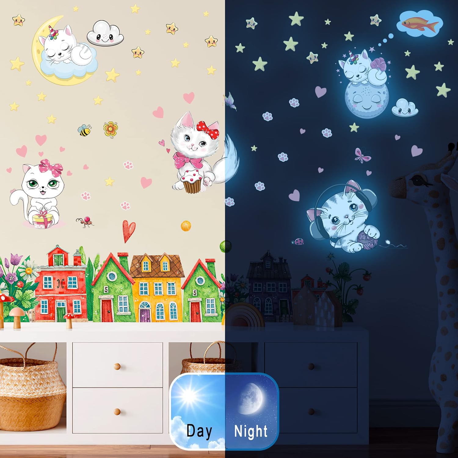 • 【Perfect Gifts for Kids】- This is a perfect special gift for kids, boys and girls all like cute animals. The cat’s stickers decoration makes the room full of childishness. The soft light in the dark makes the children no longer afraid and have a sweet dream.