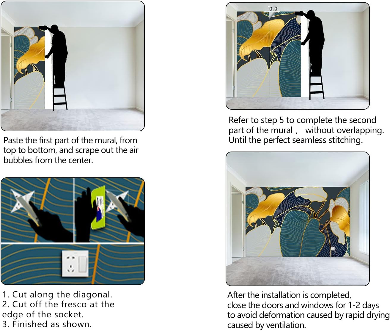 • It's easy to install: at the bottom of each mural we have a numbered sequence, You can refer to the instructions we provided and the main picture 6-7,just match the numbers and you'll be amazed!