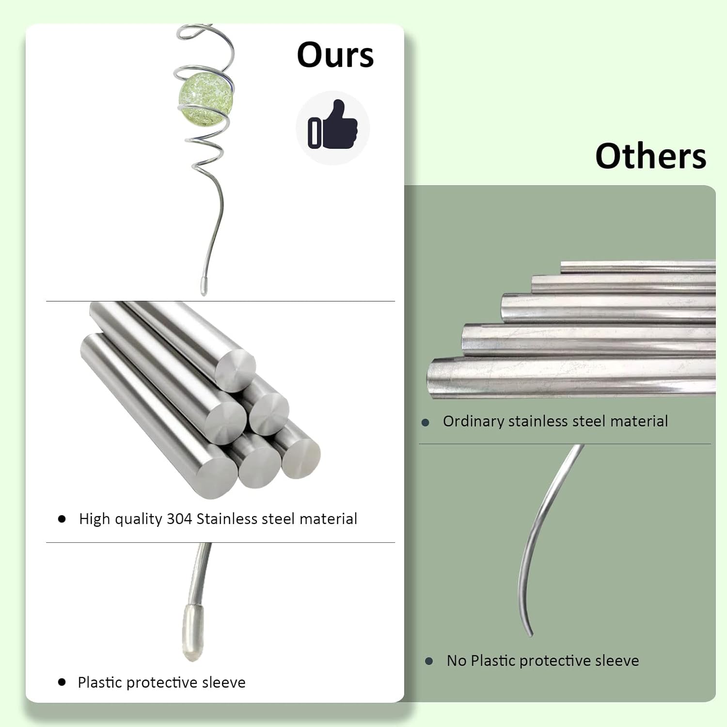 • 【High Quality】11inch height spiral tail made of #304 stainless steel wire,the 2inch colored ball made of pure solid color glass material,have good weather resistant,no fading under sunshine.Better quality than iron material with nickle plating and painting color glass ball in the market.