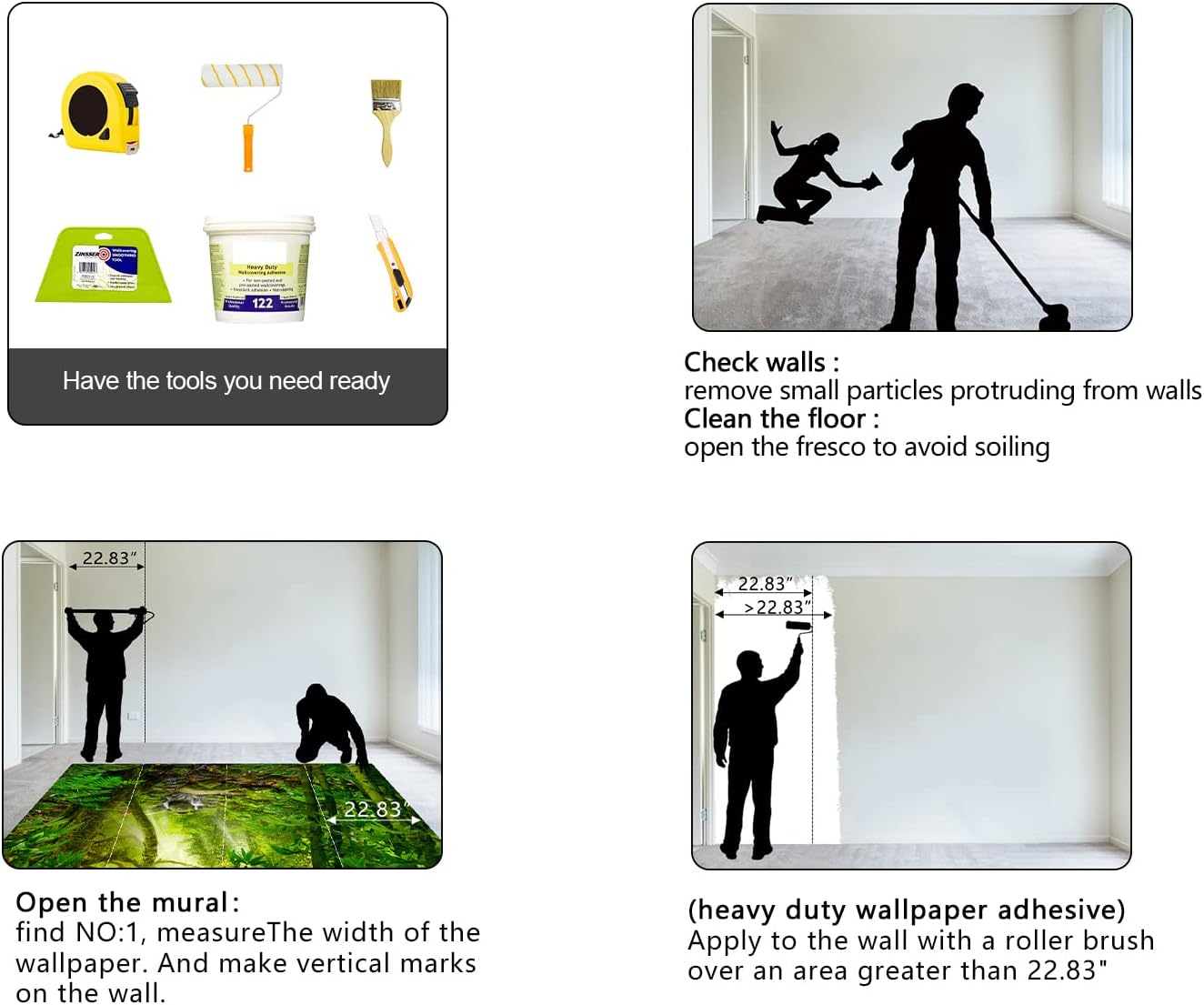 • This mural is It's not Peel and Stick . Additional Purchase required ( thick wallpaper adhesive ) please Check if is the product you need . thanks.