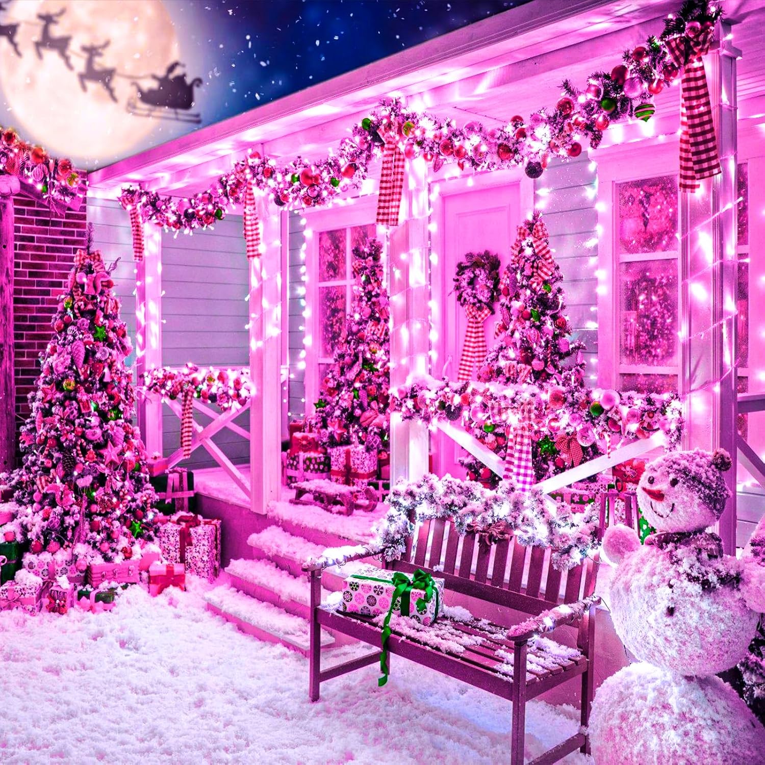 • Waterproof Fairy Lights Plug in: The pink Christmas lights design with IP44 outdoor waterproof, can withstand wind, snow, rain and extreme weather. String lights are equipped with a UL certified 29V low-voltage plug ensures the safety. It's safe for family with kids or pets!