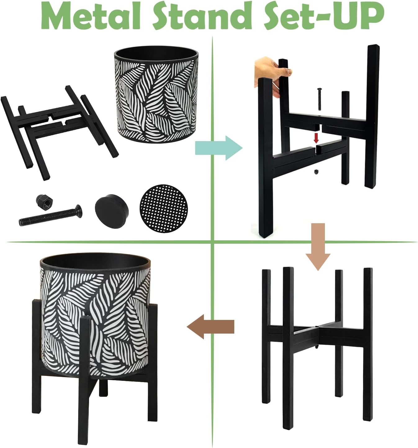 • TROPICAL AMBIANCE: The palm leaf print adorning these flowerpots exudes a sense of tropical charm, instantly elevating the ambiance of your living spaces. Create a serene garden sanctuary on your patio, a lush indoor oasis in your living room, or a tropical corner on your balcony with these stunning pots and stands.