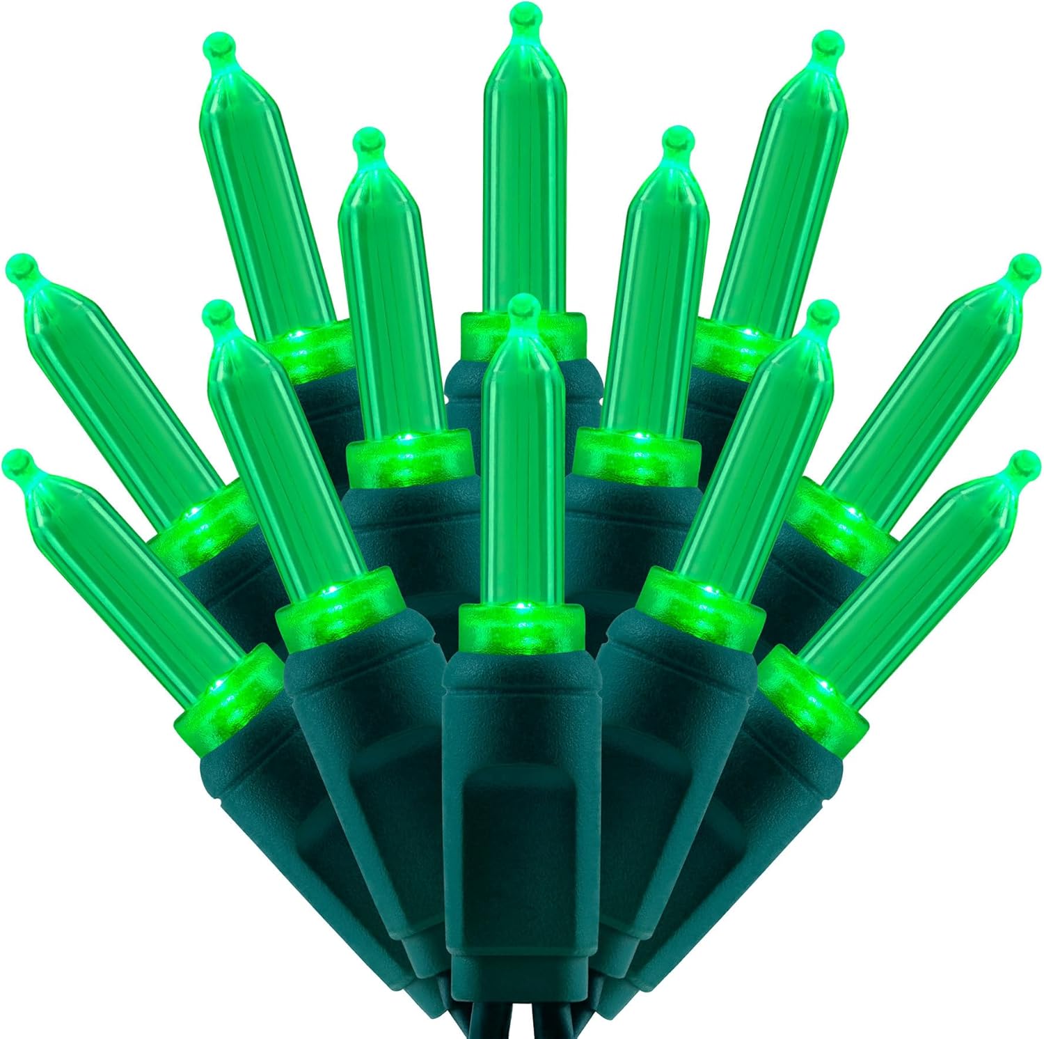 • SPECIFICATIONS ☀ Each pack contains 1 strands of one-piece string lights, total length 33 feet with 100 count green mini lights. 22 AWG green cord, 4" lead, 4" spacing, 4" tail.