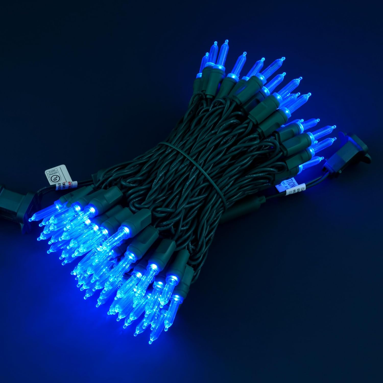 • SPECIFICATIONS ☀ Each pack contains 1 strands of one-piece string lights, total length 33 feet with 100 count blue mini lights. 22 AWG green cord, 4" lead, 4" spacing, 4" tail.