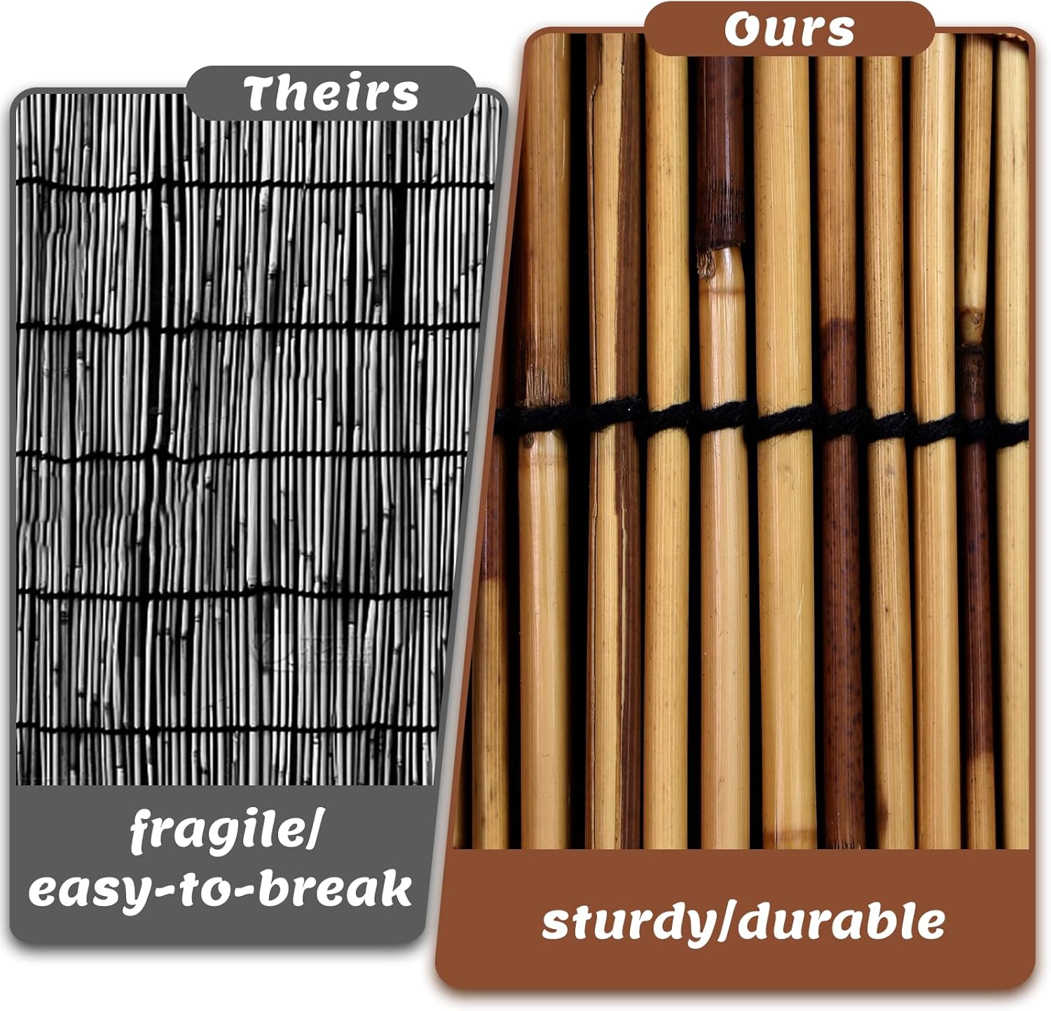 • 【70% Blackout & Privacy】Bamboo reed fencing, made from uniformly thick and thin reed poles with a polished surface to prevent pinched fingers, and 70% visibility occlusion rate, effectively protect your privacy, while allowing air and breezes to pass freely