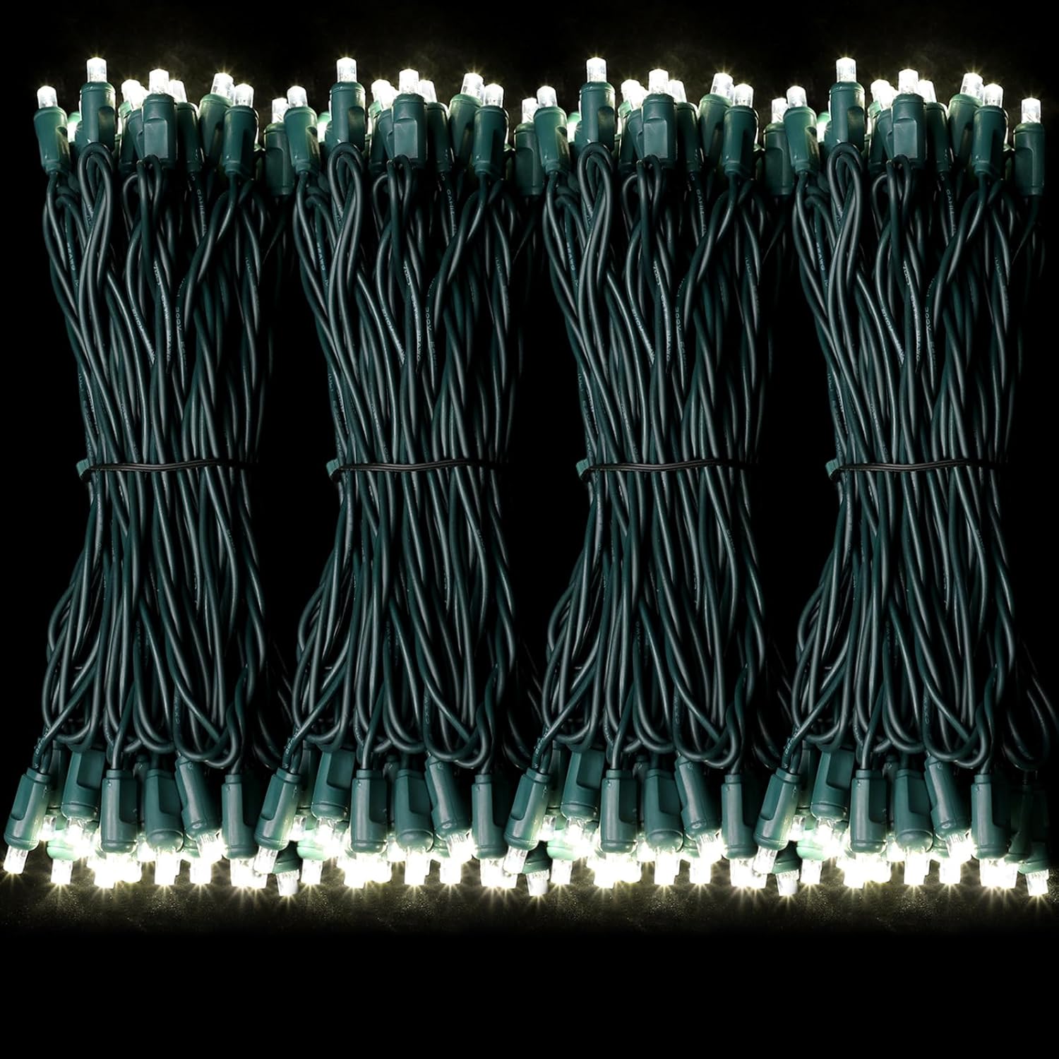 • One-Piece 5MM Commercial Decoration LIGHTS : 50ft 100 LED Lights (50 Lights 25ft X2Groups), 6-inch spacing. Green wires have a wide range of uses and are perfectly integrated with green plants or shrubs.no extra adapter is needed,bulbs are cool to touch,with the rectifier,keep the light steady (not twinkle).