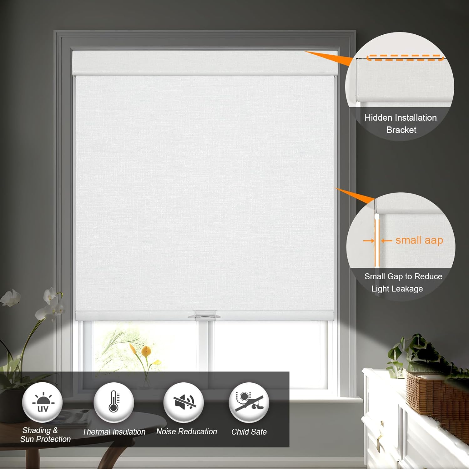 • [COLOR UNITY]: Our Roller blinds use the new valance, it is wrapped in fabric of the same color as the shade as well as the lower rod, the shades uniform in color and makes the room more harmonious and beautiful. This cordless shades made of blackout jacquard fabric which can filter light, protect UV rays and heat insulation.In addition, instead of plastic brackets, our upgraded metal brackets are more durable and make the fabric closer to the window so as to ensure a better shading.