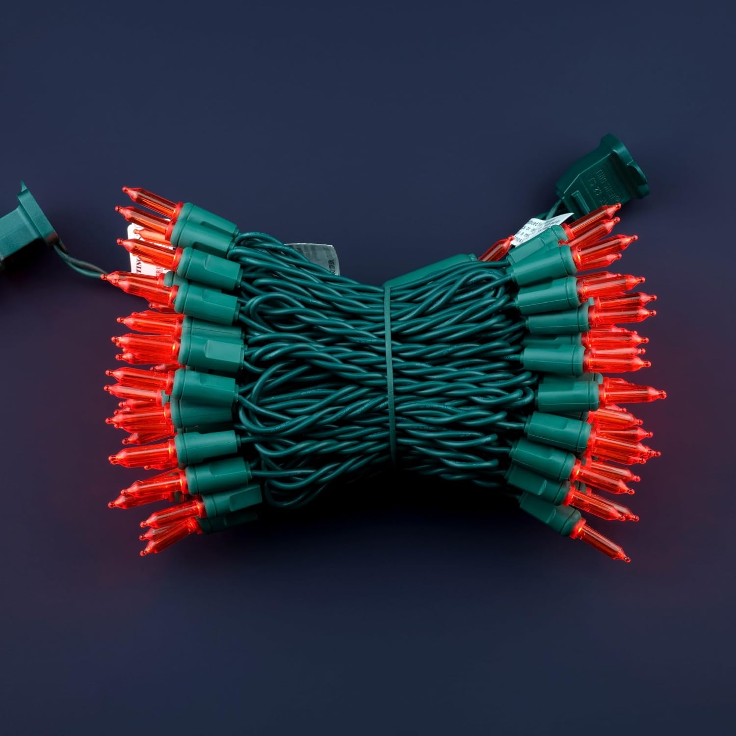 • SPECIFICATIONS ☀ Each pack contains 1 strands of one-piece string lights, total length 33 feet with 100 count red mini lights. 22 AWG green cord, 4" lead, 4" spacing, 4" tail.