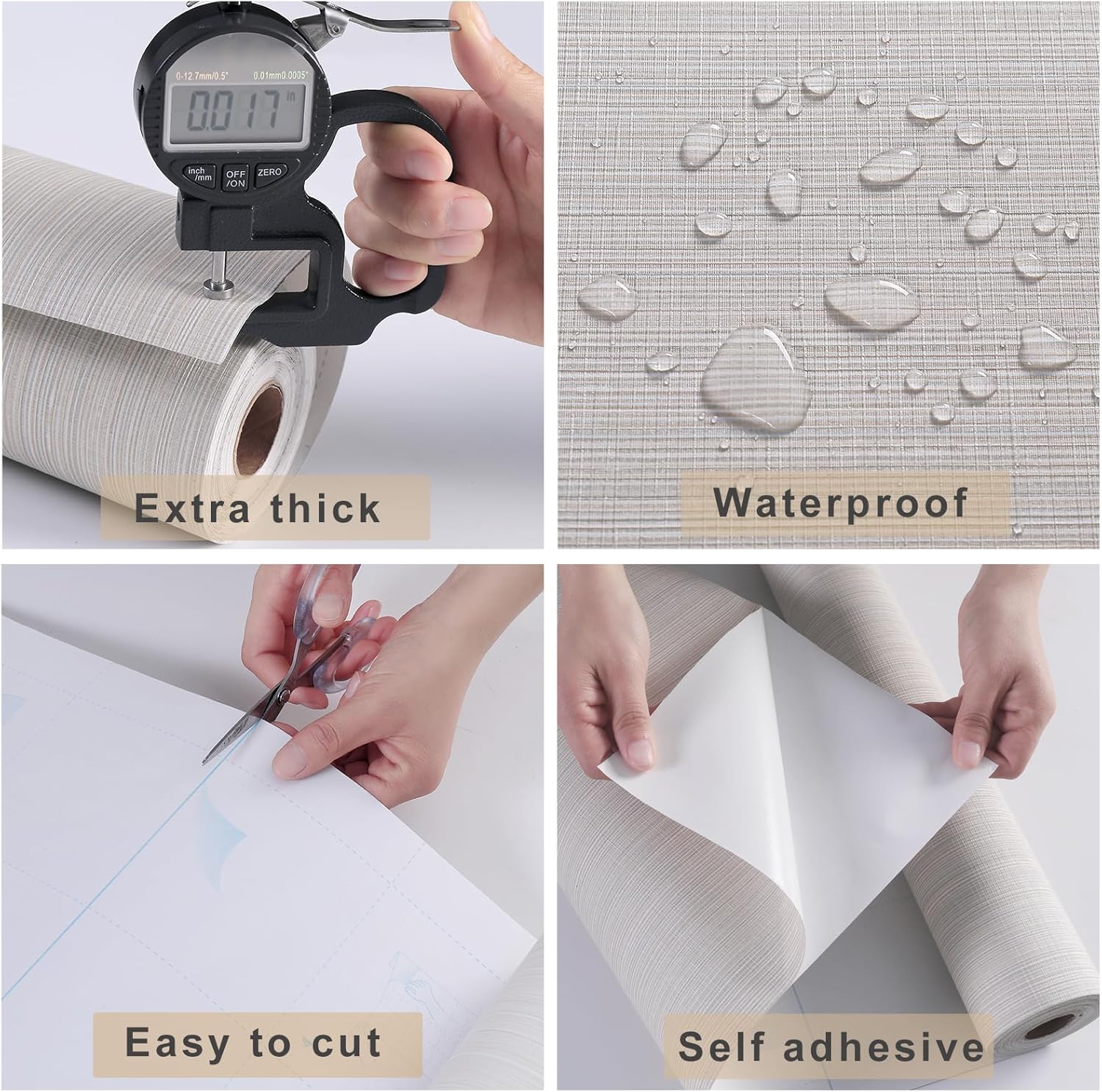 • FEATURES--Vinyl/pvc material. Thicker than normal wallpaper, full of real texture,self adhesive, easy to apply. Waterproof . Indoor use, ideal for most smooth flat surfaces such as bedroom,living room,cabinets,furniture,etc.