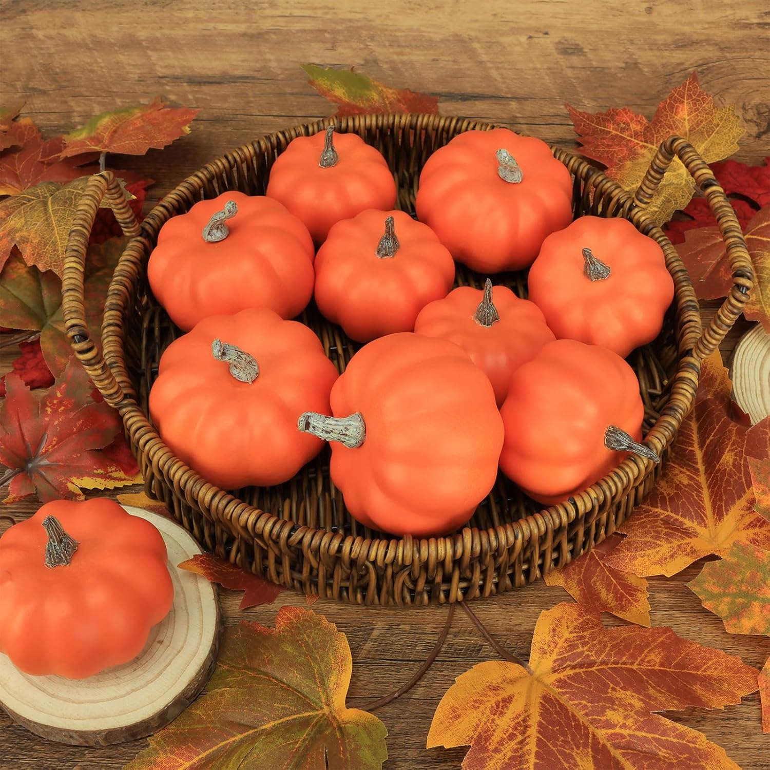 • 【Superior Material of Pumpkin Decorations】 - Our artificial pumpkins harvest decoration set are made of environmentally friendly styrofoam, plastic, hand glue. They are very lightweight and durable, convenient fall table decor and thanksgiving table decorations, much more lifelike in color, texture, shape for pleasant fall festival decorations