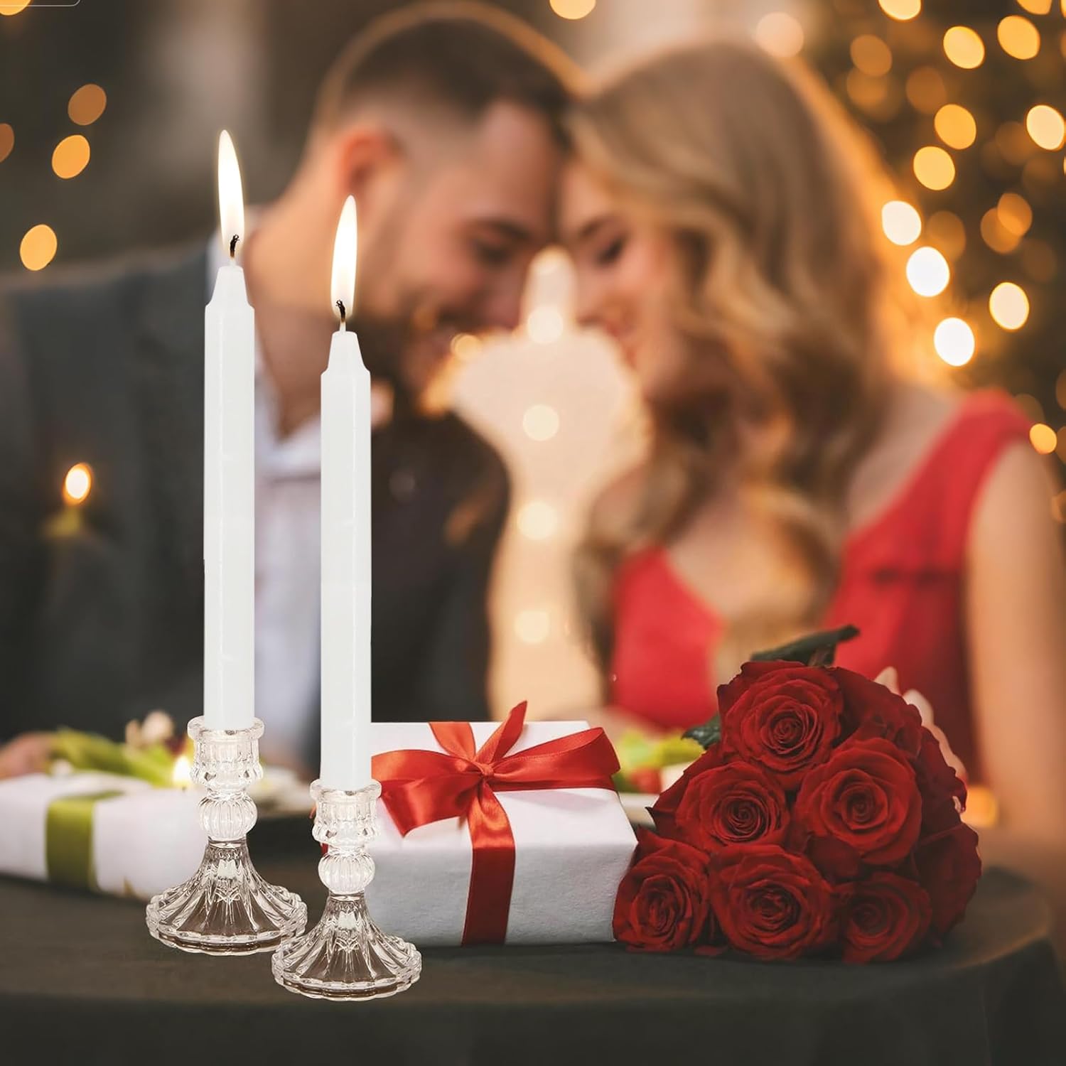• Ribbed Taper Candle Holders:Classic taper candlestick holders have a chic shape with prominent texture and stripe clear appearance, it can reflect the candle light gorgeously,collocate with other small candle holders and table centerpieces decoration