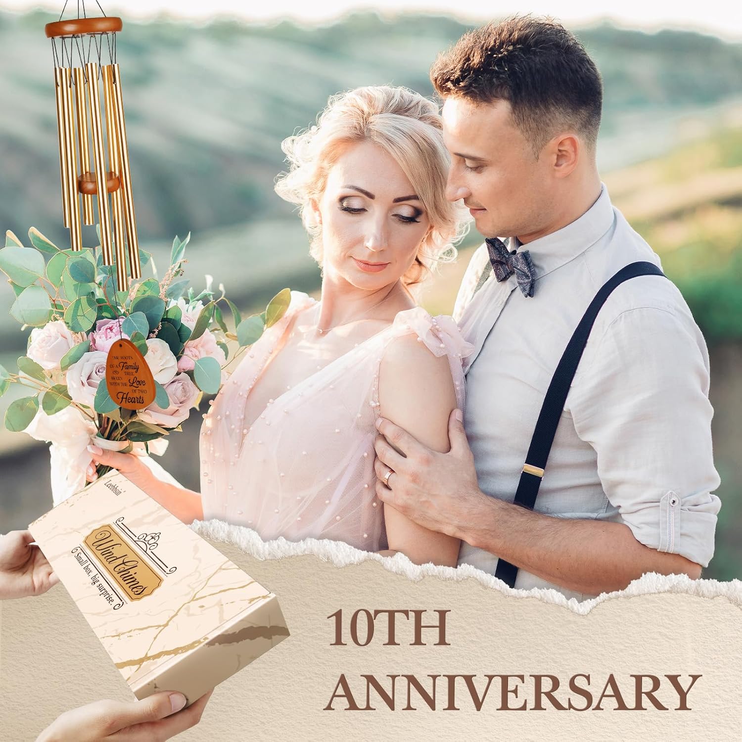 • 【Romantic 10th Wedding Anniversary Gifts】This beautiful 10th Anniversary Wind Chime is a heartfelt way to Commemorate the love and devotion of 10 years of marriage, honor your great love story like never before. Celebrate the milestone of a 10-year marriage with the melodious gift of tranquility, a perfect gift for parents, grandparents, couples and friends.
