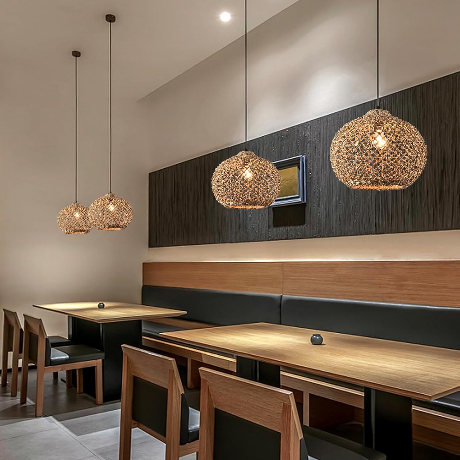 • Light bulb requirements: This rattan pendant light uses a US standard E26 lampholder up to 60W.Compatible with a wide range of E26 bulbs;LED incandescent CFL halogen (bulb not included)Wicker hand-woven pendant fixtures make it perfect for large spaces such as dining rooms and kitchen islands