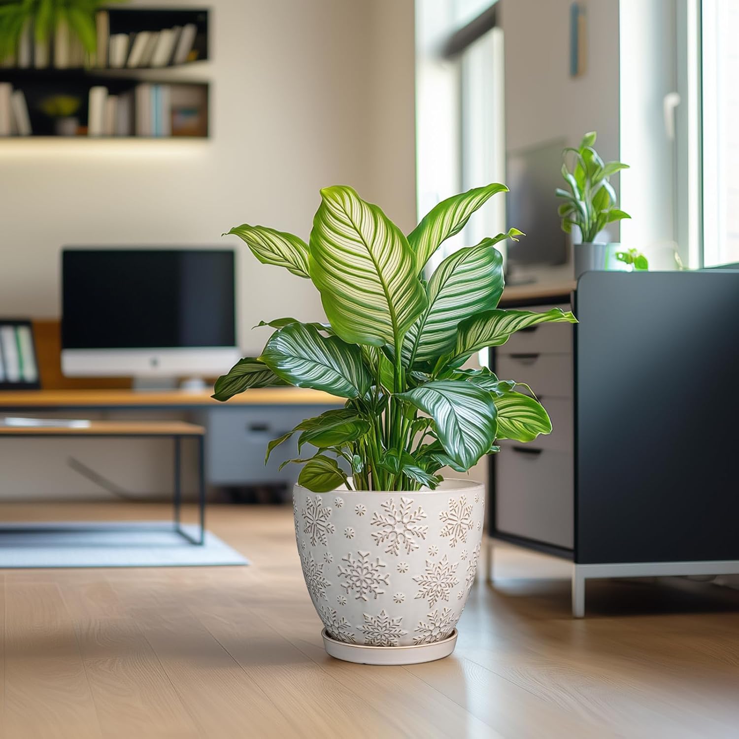 • Stylish Appearance: Our ceramic planter has a white main colour and a beautiful embossed snowflakes pattern on the surface, elegant appearance making it ideal for home decor, garden decor and office decor