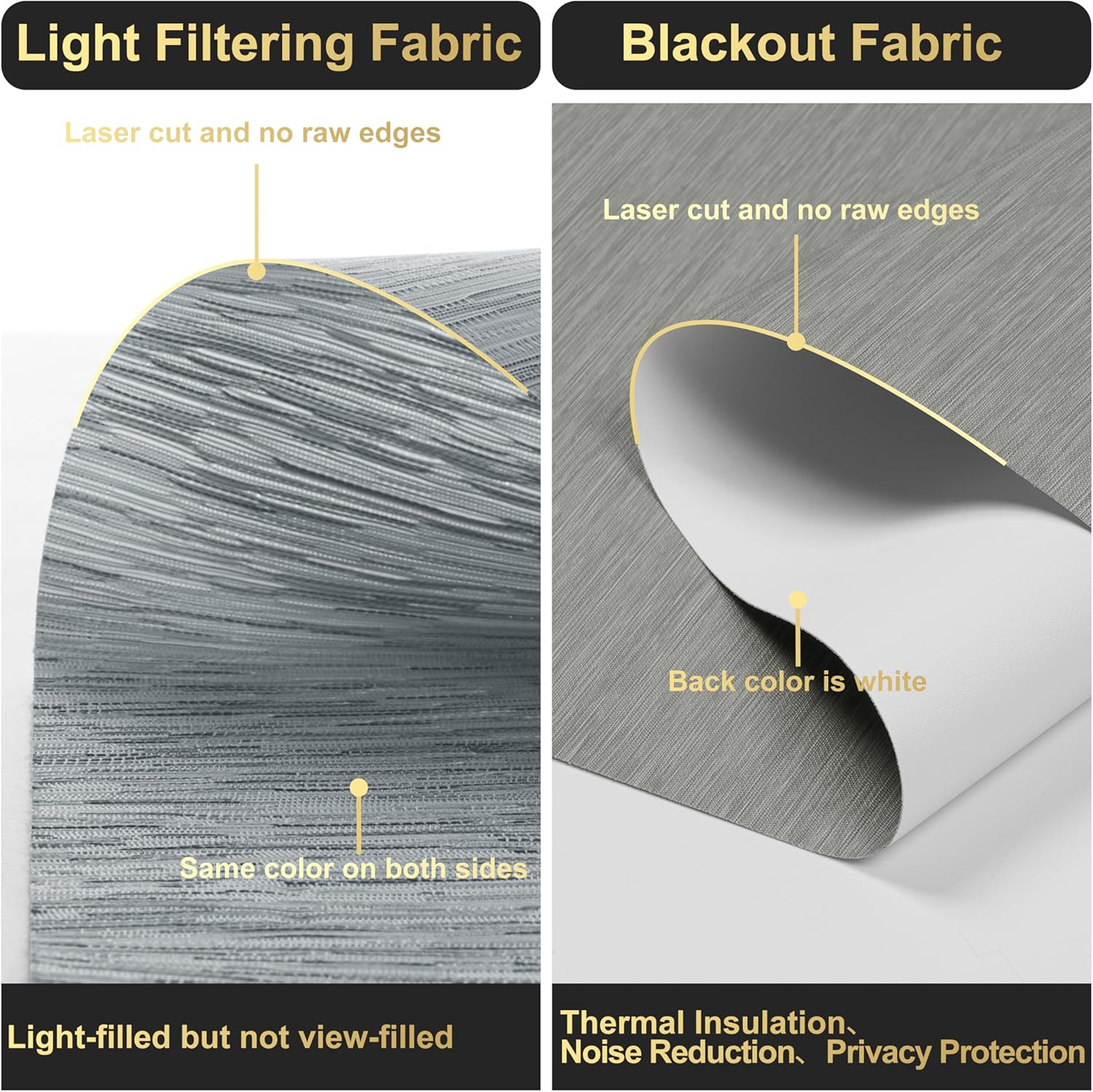 • MULTI-PURPOSE SHADE:Dual roller shades consisting of blackout and light filtering shades, blackout roller shade can 100% blackout,thermal insulation and UV Protection,so that you can experience quiet and comfort of the night during daytime;Light filtering roller shade allow light to filter into your room,and no glare,soft diffused light allow for perfect balance of light and darkness,and also enhances overall aesthetics of your home,allowing for a romantic and comfortable living environment.