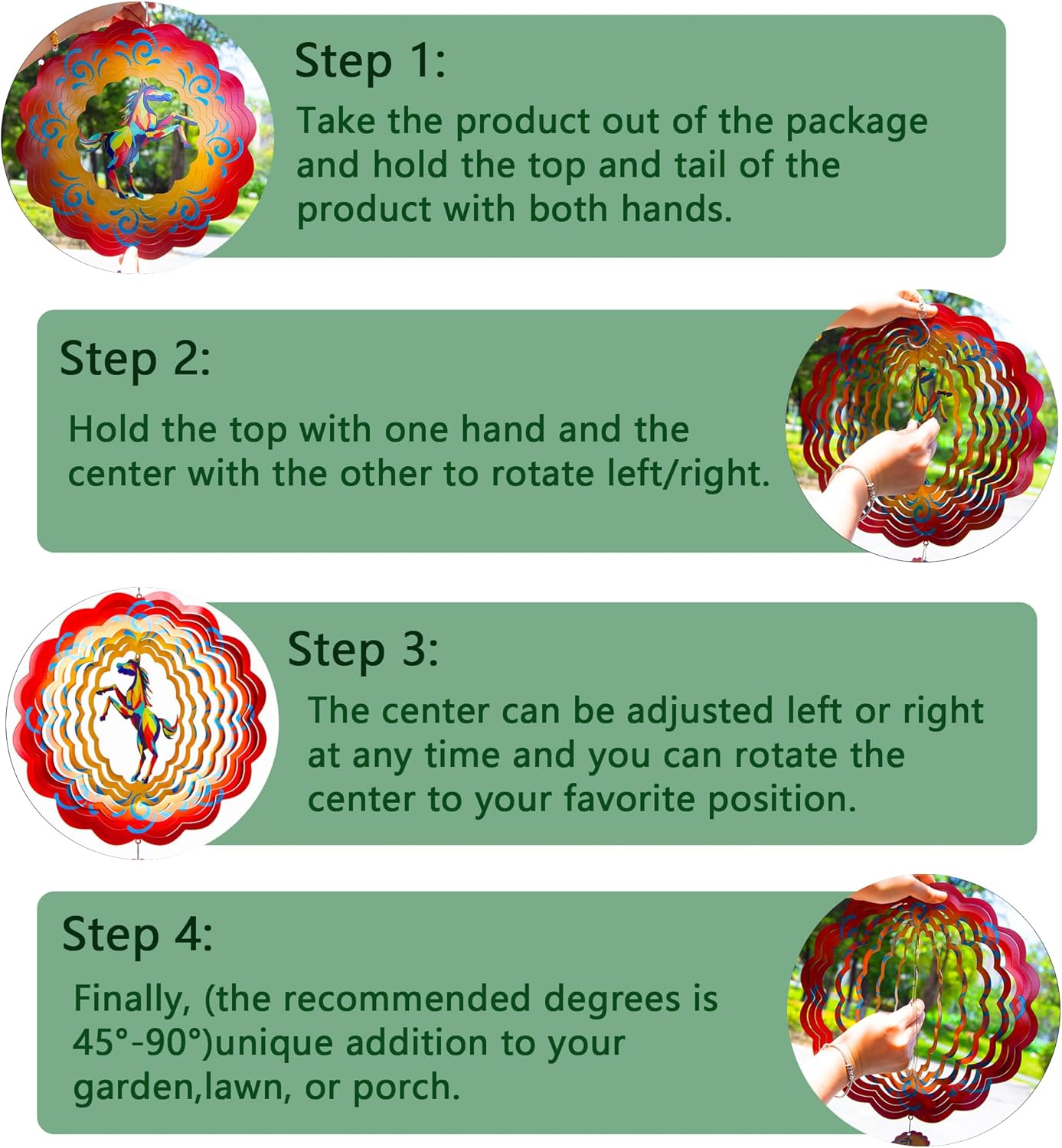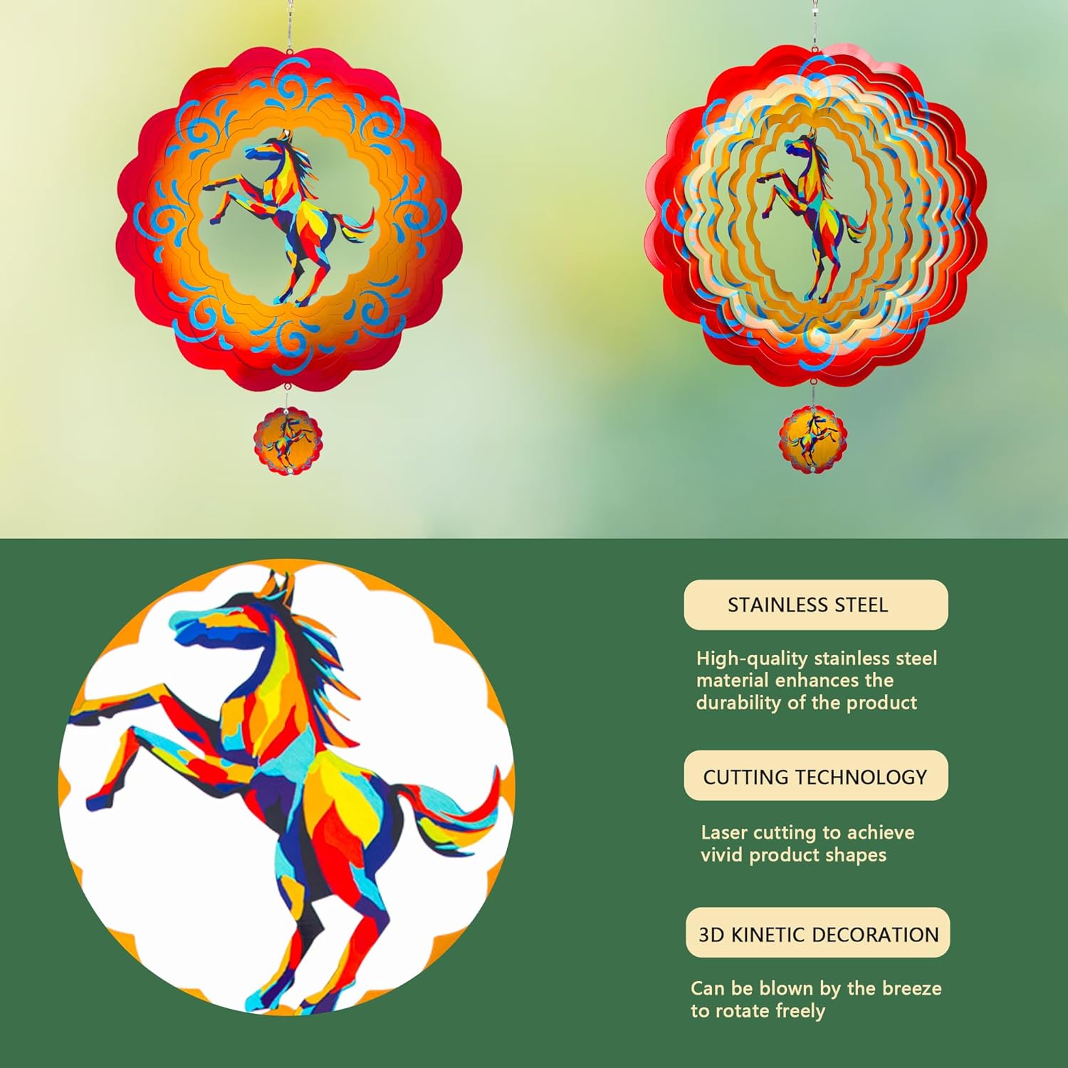• 【Product introduction】: This 3D wind spinner is made of 12 inches and made of high-quality stainless steel. which adopts cutting technology and PUV printing to achieve a vivid horse shape.