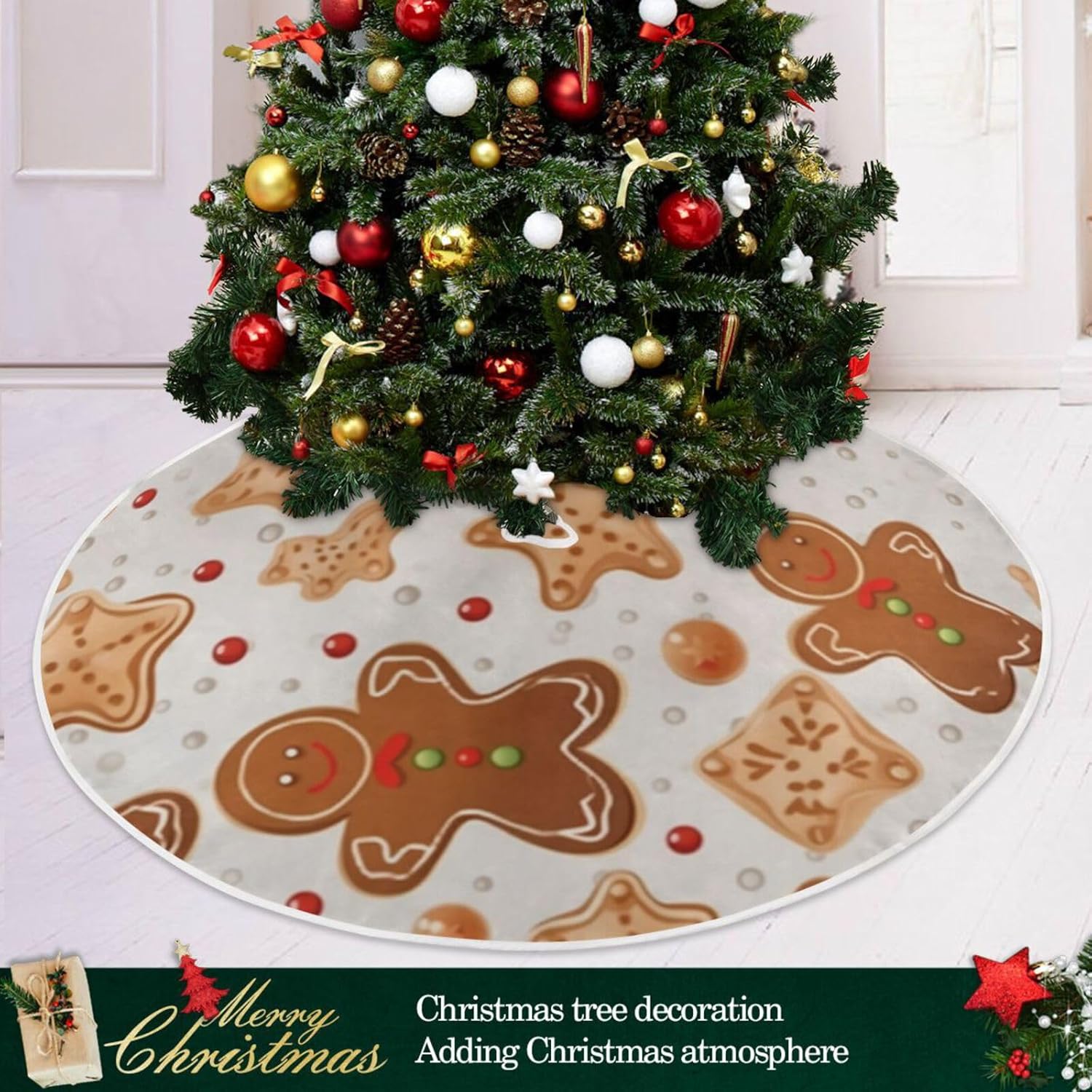 Gingerbread Christmas Tree Skirt - 48 Inch Xmas Tree Mat for New Year Party Decorations