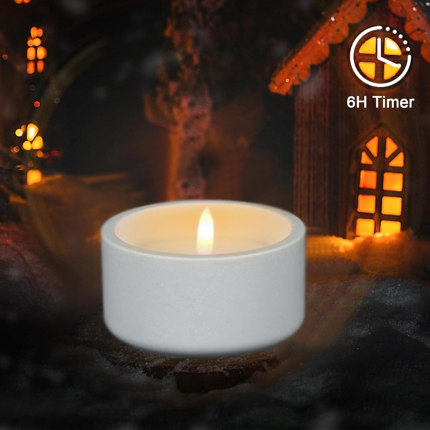 • Realistic 3D Flickering Flame: This LED candles simulate the 3D flames and black wicks of real candles for a more bright glow, creating a atmosphere with warm light. The light is reflected on the black concrete base, as if a real candle is burning in the air, and from a distance it looks almost the same as traditional real wax