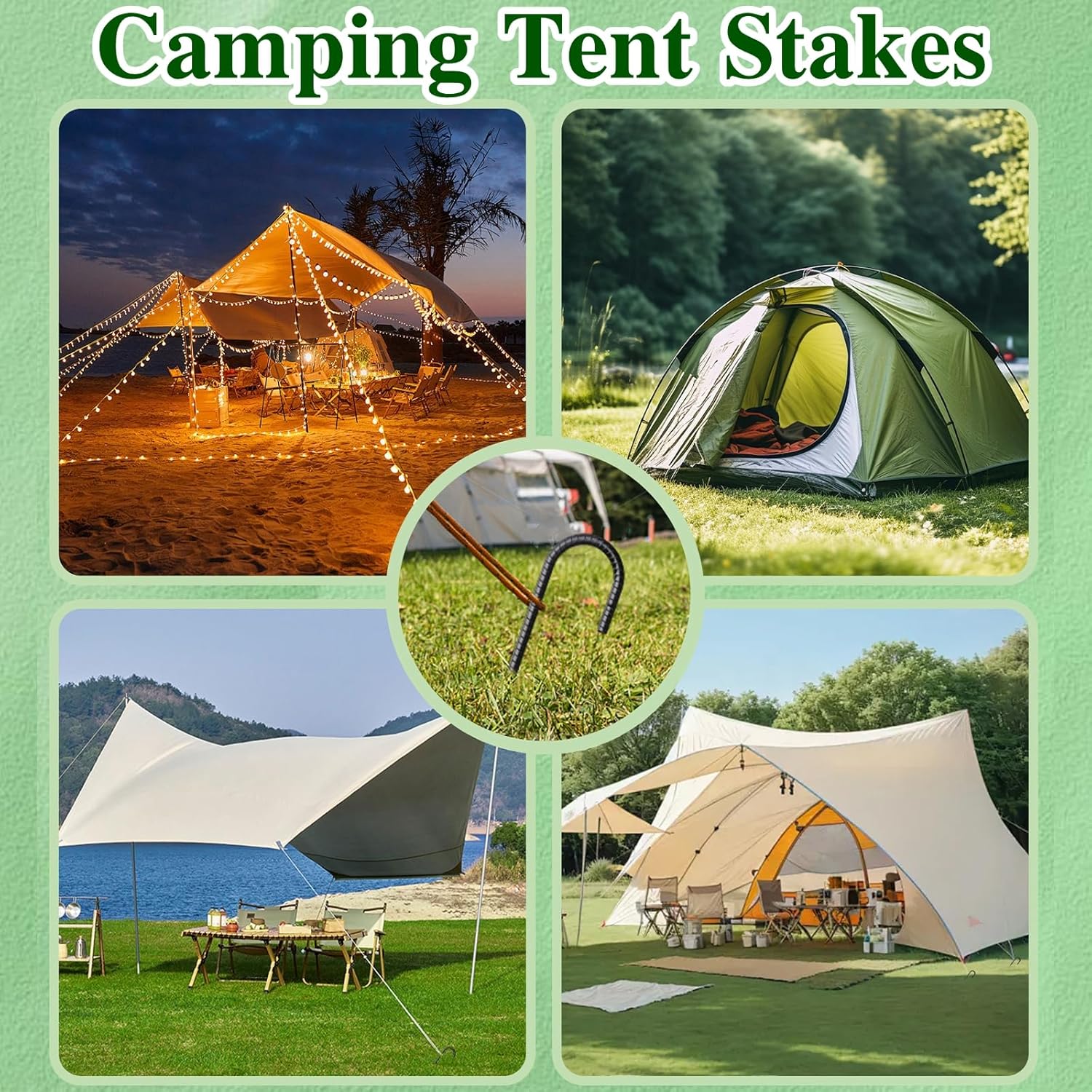 • 【SHARP END】The chisel point design facilitates easy insertion of the ground stakes into various surfaces, including dirt, grass, sand, hard soil, and rock. These tent stakes constructed from thick and sturdy metal steel. These stakes for outdoor decorations are resistant to deformation, which effectively minimizes movement even in strong winds.