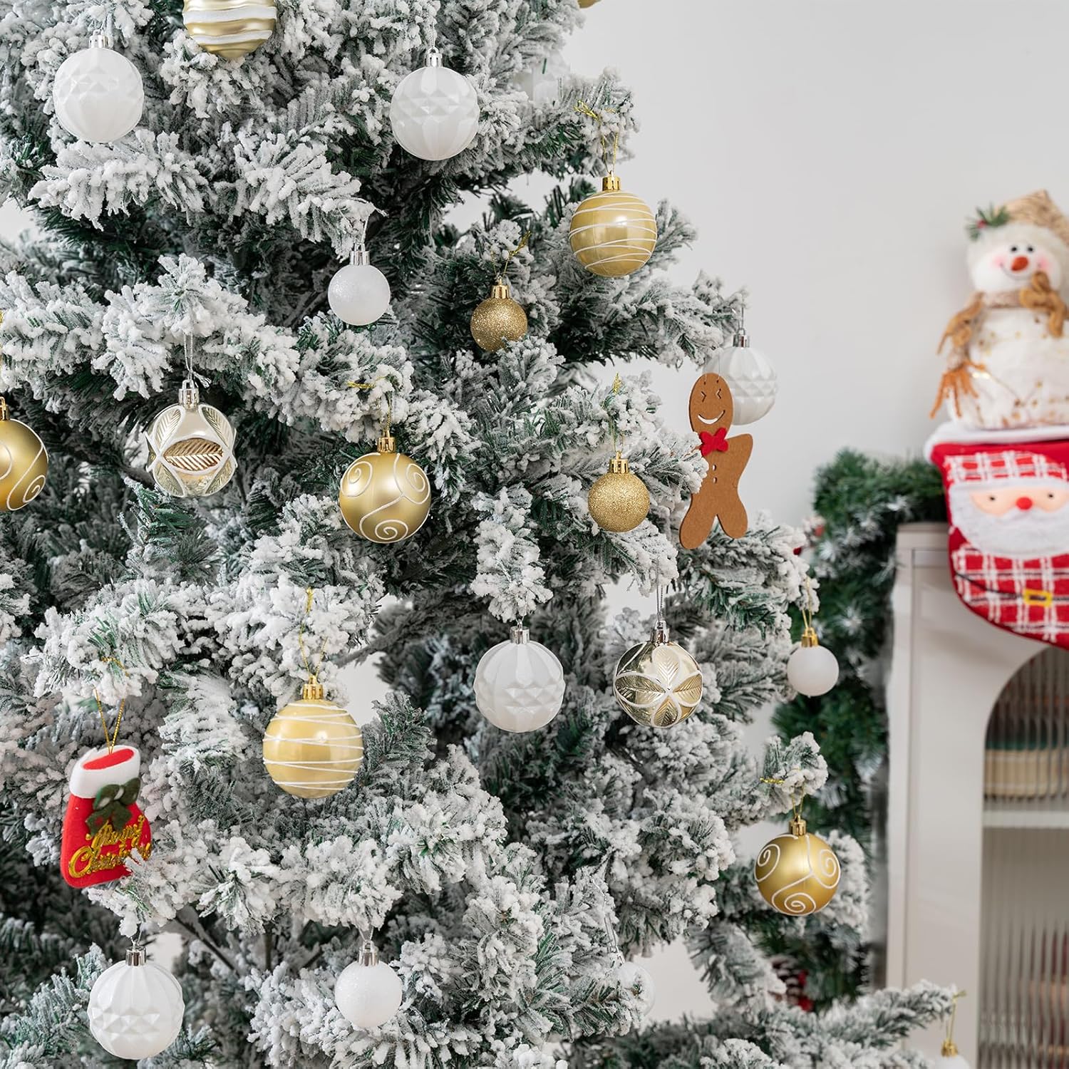 100Pcs Christmas Balls Ornaments Set, Shatterproof Christmas Decorations with Hand-held Gift Package for Xmas Tree/Holiday/Wedding/Holiday/Party Decor (Gold & White)
