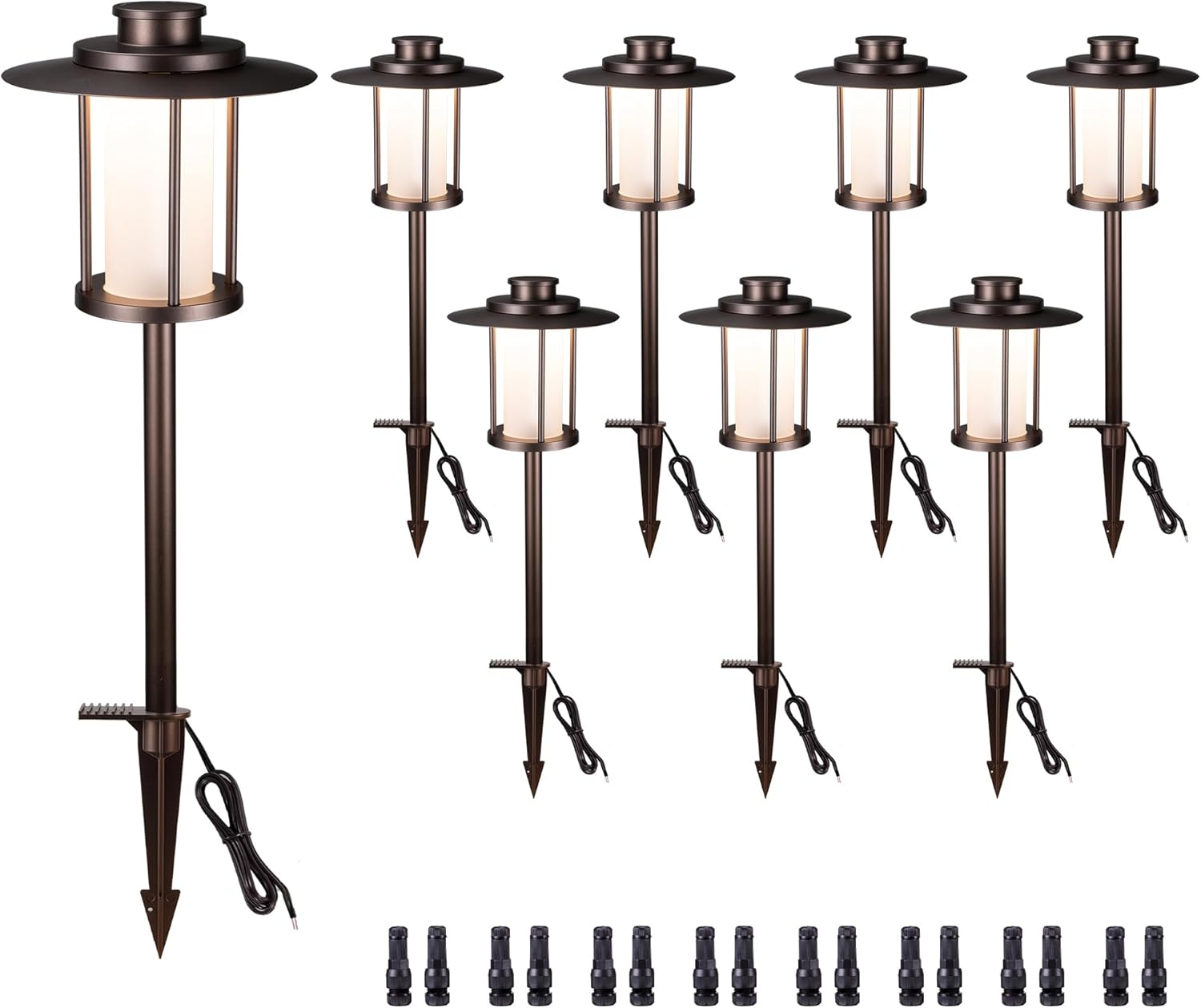 12V Landscape Path Light, 5 Color Temperature Selectable Pathlight LED, IP65 Waterproof Walkway Lights Low Voltage Hardwired, 5W 150LM ORB Metal Outdoor for Garden Walking Area (8 Pack)