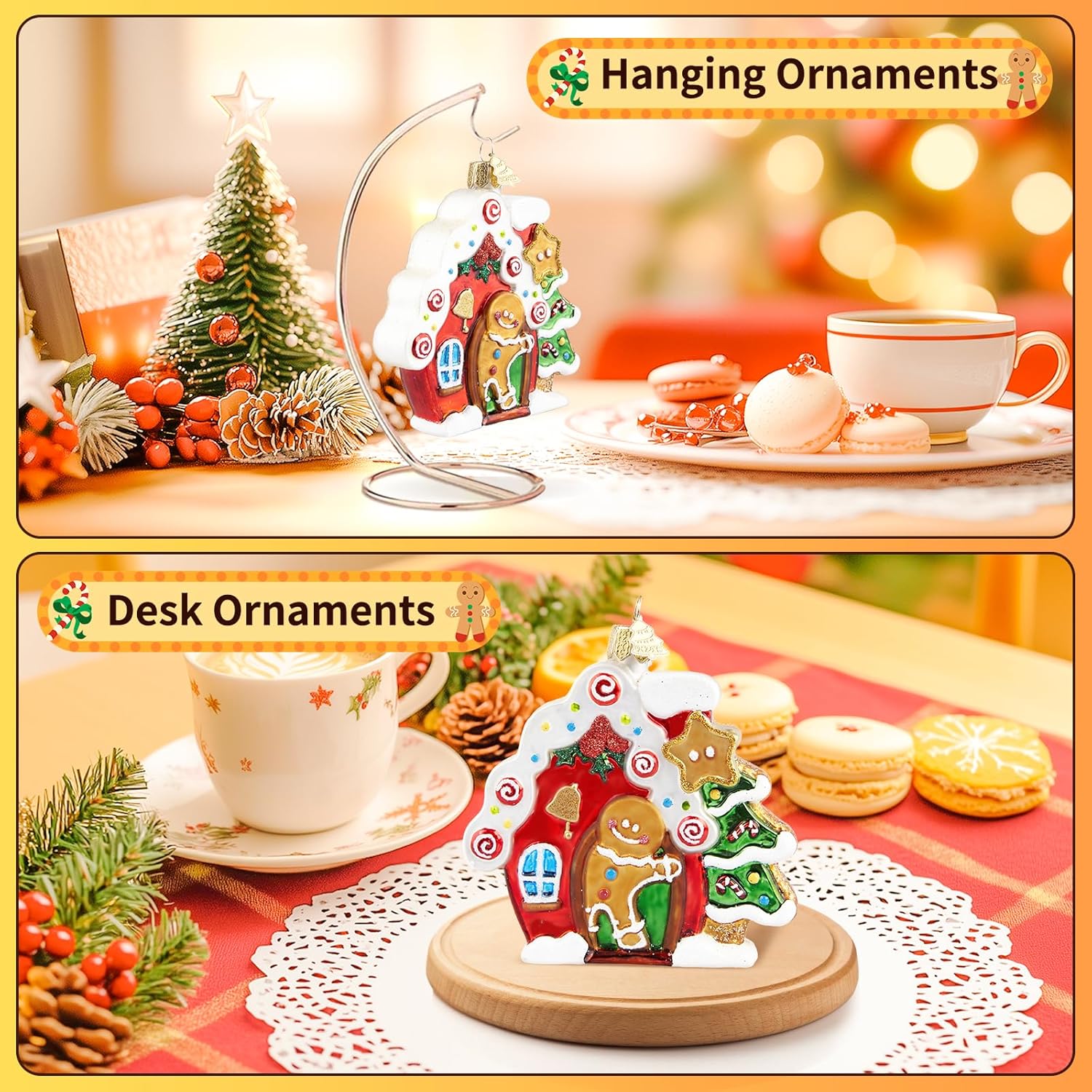 • Full of Festive Atmosphere: Handmade glass Christmas ornament adopts the image of a cute gingerbread man, who stands in front of the door of the house and comes out to greet you. It is a symbol of missing and reunion. The gingerbread ornament overall hand-painted, exquisite craftsmanship, delicate and vivid image depiction, you can decorate any place you want to decorate, believe it can be integrated well