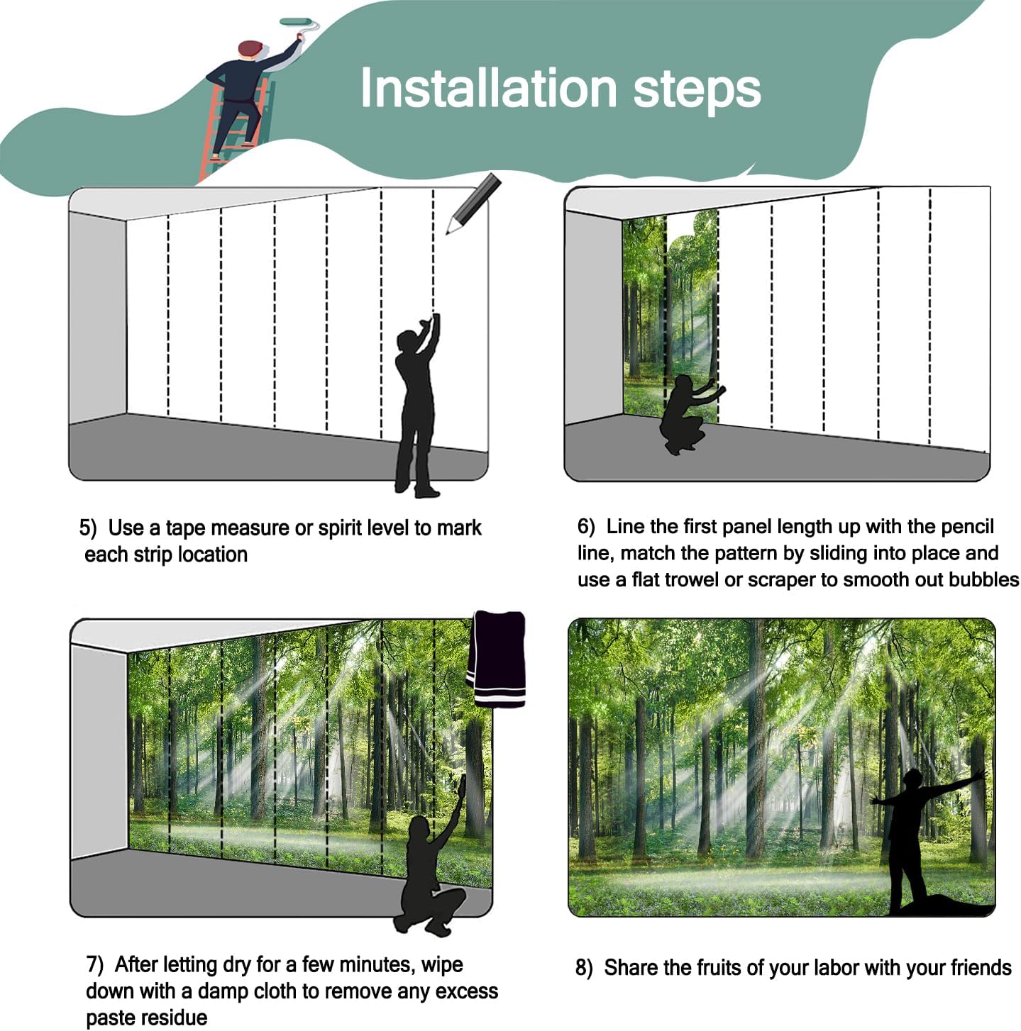 • Matters Need Attention:Our wall mural is not self-adhesive or peel and stick.You need to buy their own tools and heavy wallpaper adhesive, otherwise it can not be used