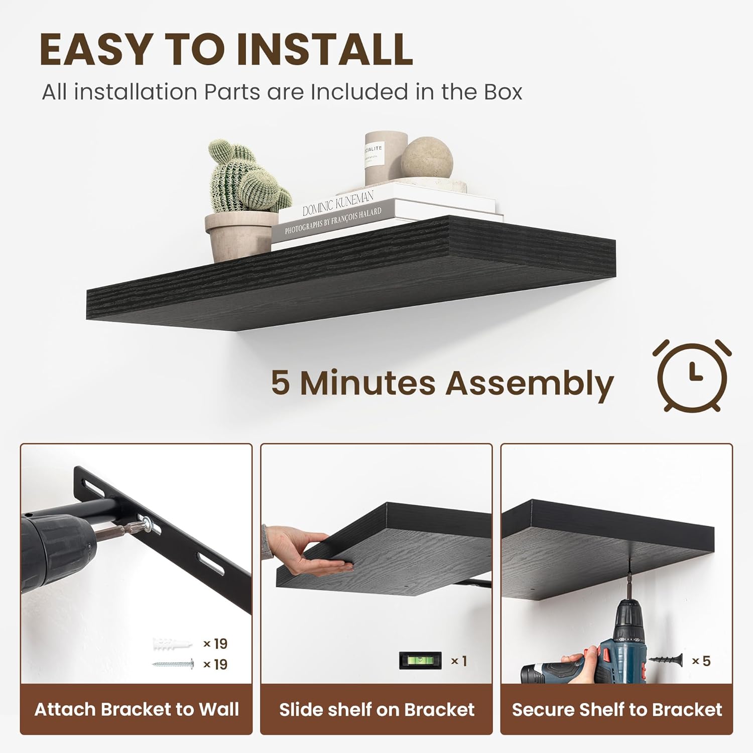 • 【Easy Installation】Designed with user convenience in mind, these shelves come with all necessary mounting hardware and clear instructions. You can have them up and ready to use in less than 5 minutes. Plus, our customer service is always ready to assist with any queries or concerns, ensuring a hassle-free experience