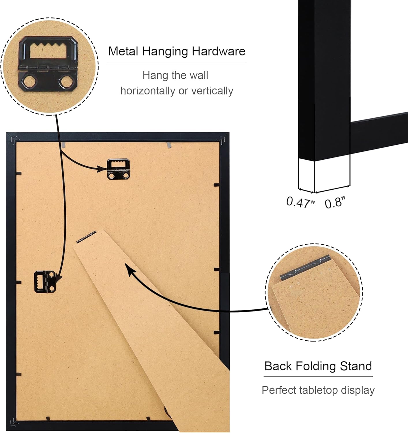 • Multiple Display:10 by 14 photo frames come with hanging hardware, which can be hung on the wall, or displayed on the tabletop through the stand
