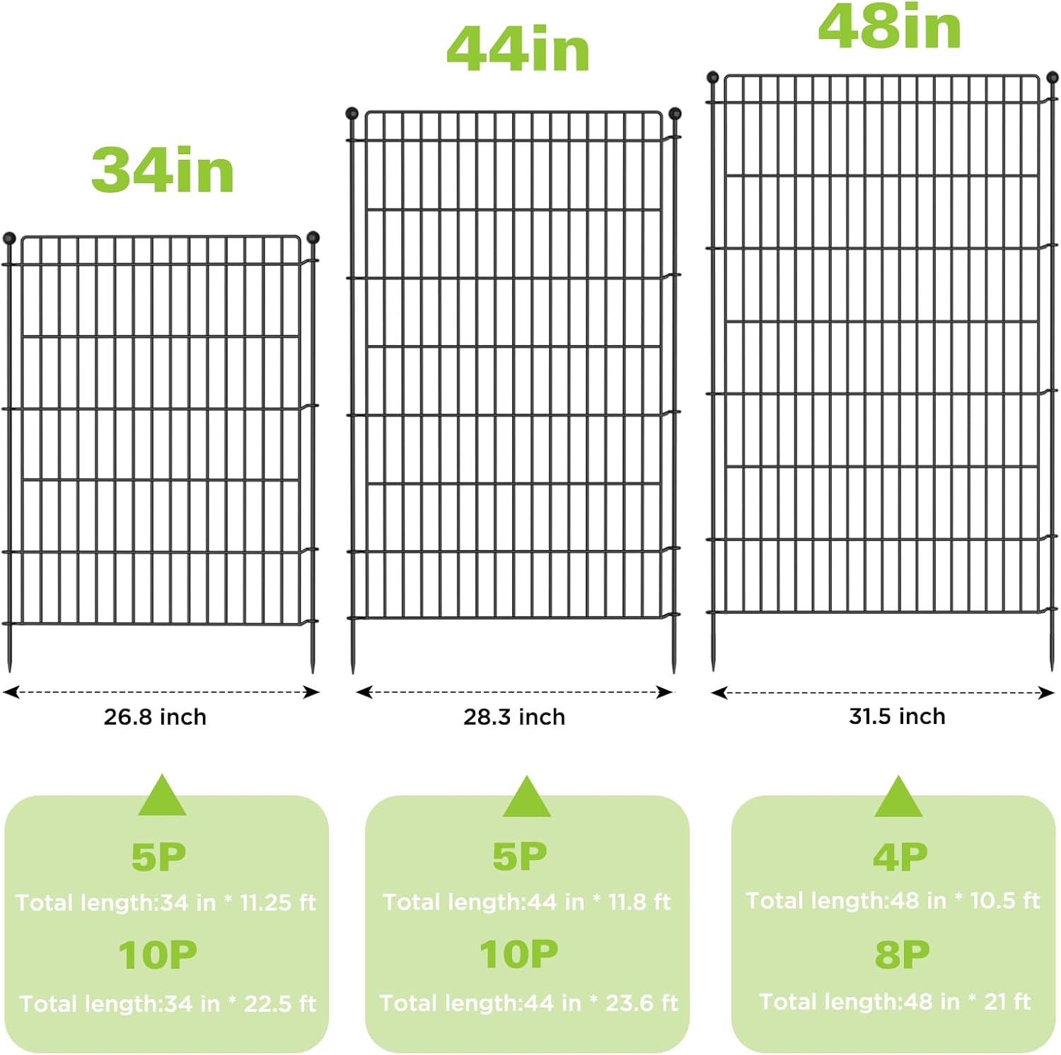 10 Panels No Dig Garden Fence Animal Barrier, 34in(H) × 22.5ft(L) Decorative Metal Outdoor Dog Fence, Rustproof Pet Fencing for Yard, Patio, Flower Bed -Temporary Fencing| Easy to Install