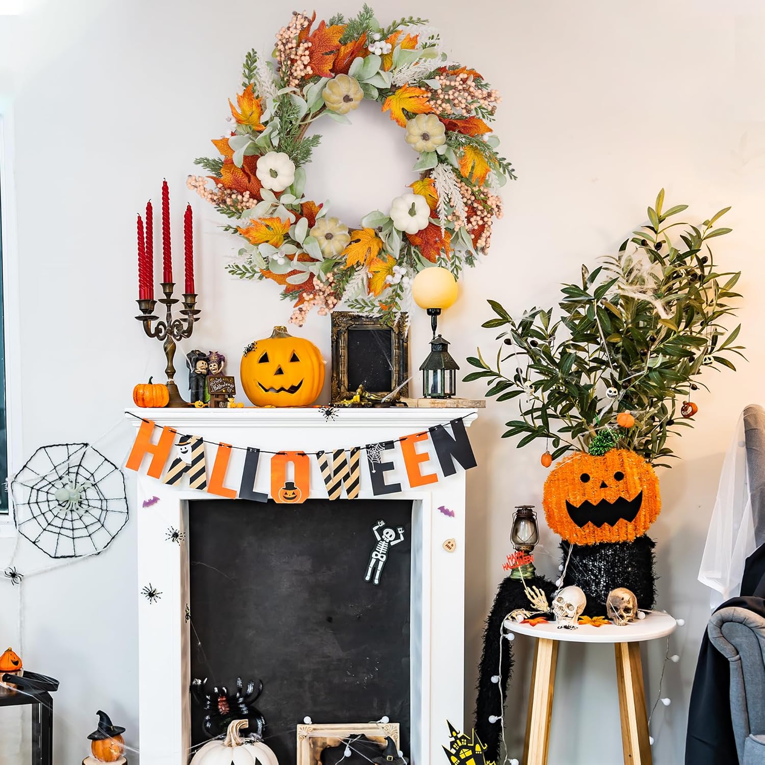 • 【Versatile Use】: This fall wreath can be used both indoors and outdoors. It can be hung above a fireplace, on a front door, on a living room wall, or used as a table decoration to celebrate the season and festivals, especially Halloween and Thanksgiving.