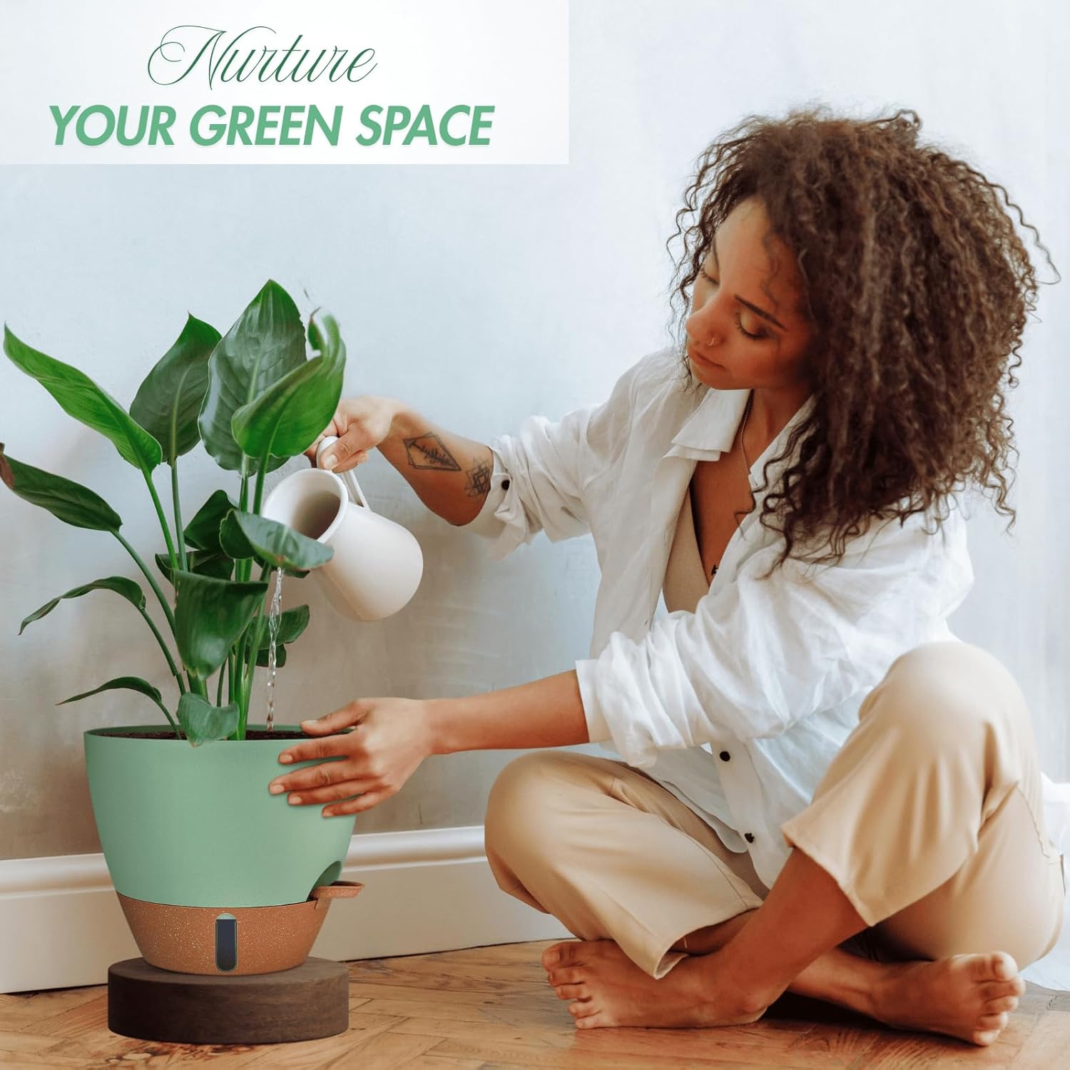 12/10/8 Inch Self Watering Pots for Indoor Plants Plastic Large Plant Pot for Outdoor Plants, Water Level Window & Spacious Reservoir Flower Pots Decorative Planter with Drainage and Tray (Green)