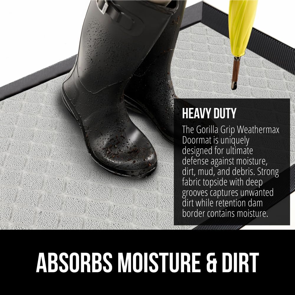 • THE ORIGINAL WEATHERMAX ALL SEASON DOORMAT: Gorilla Grip's Original WeatherMax doormat is built tough with a heavy duty, yet soft and flexible construction; deep grooves, beveled rubber border and retention dam help capture dirt, debris and moisture