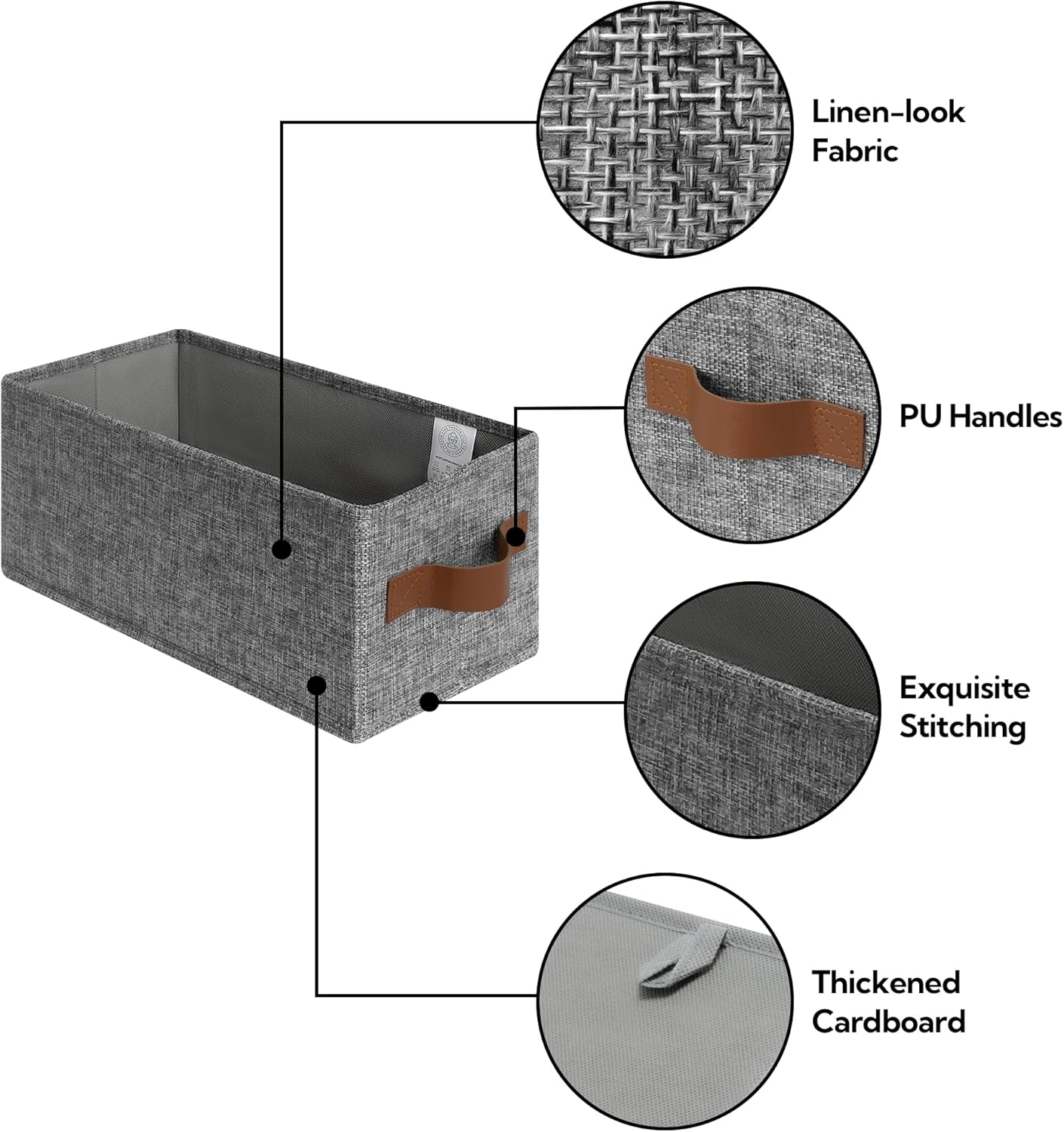 GRANNY SAYS Small Fabric Storage Bins with PU Handles, Storage Baskets for Shelves, Toilet Paper Storage, Narrow Baskets for Organizing DVD, Photos, Clothes, Diaper, Sock, Cd, 3-Pack, Gray