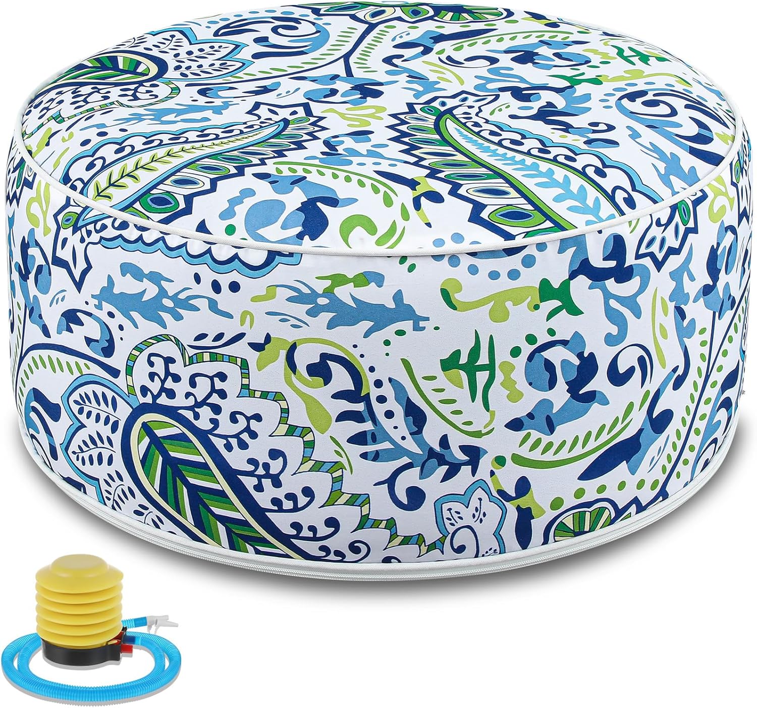 1 Pack Outdoor Inflatable Ottoman Waterproof Inflatable Pouf Foot Rest with Handle D21 x H9 Portable Outdoor Foot Rest for Patio Garden Camping or Home
