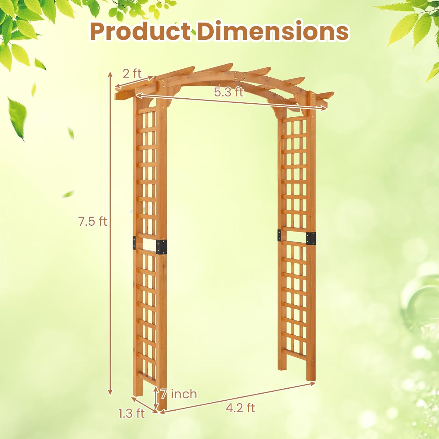 • [Natural Fir Wood]: Crafted from high-quality natural fir wood, this garden arbor blends rustic elegance with lasting durability. The wood is coated with a protective, weather-resistant finish to withstand outdoor elements.