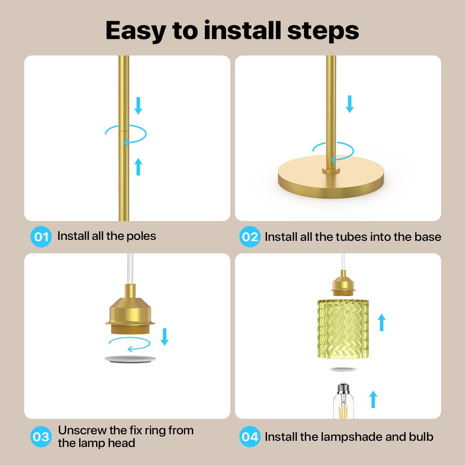 • Ready - to - Use Convenience:This crystal floor lamp comes with 3 matching E26 bulbs, saving you the trouble of extra purchases. Simply install it right after receiving the lamp and start enjoying it quickly — so you can effortlessly brighten up your daily life