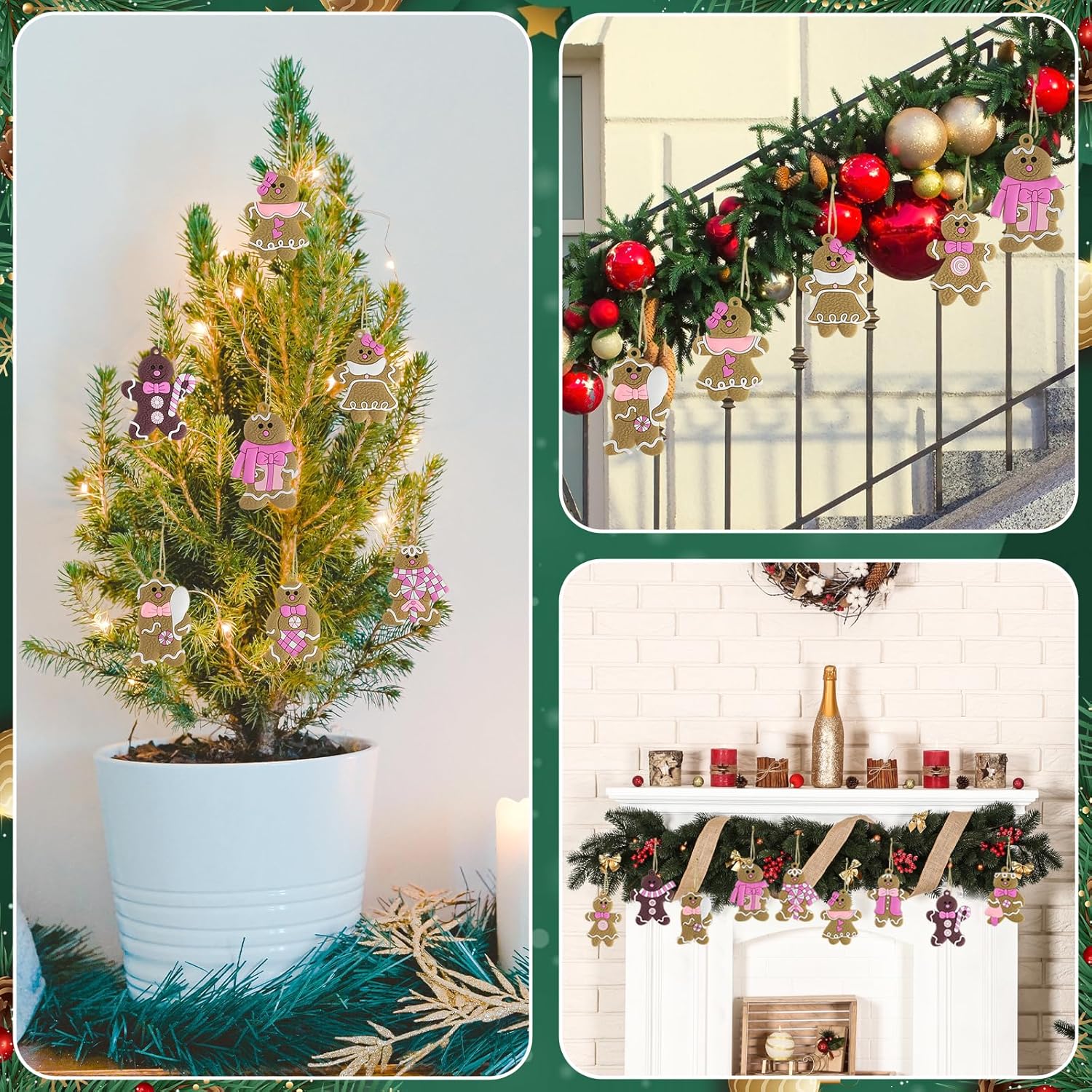 • PACKAGE: You will receive 12 pink gingerbread ornaments, each one uniquely designed with intricate details to look just like real gingerbread cookies. The Christmas tree decoration also comes with gold hanging ropes, making it easy to hang and decorate anytime