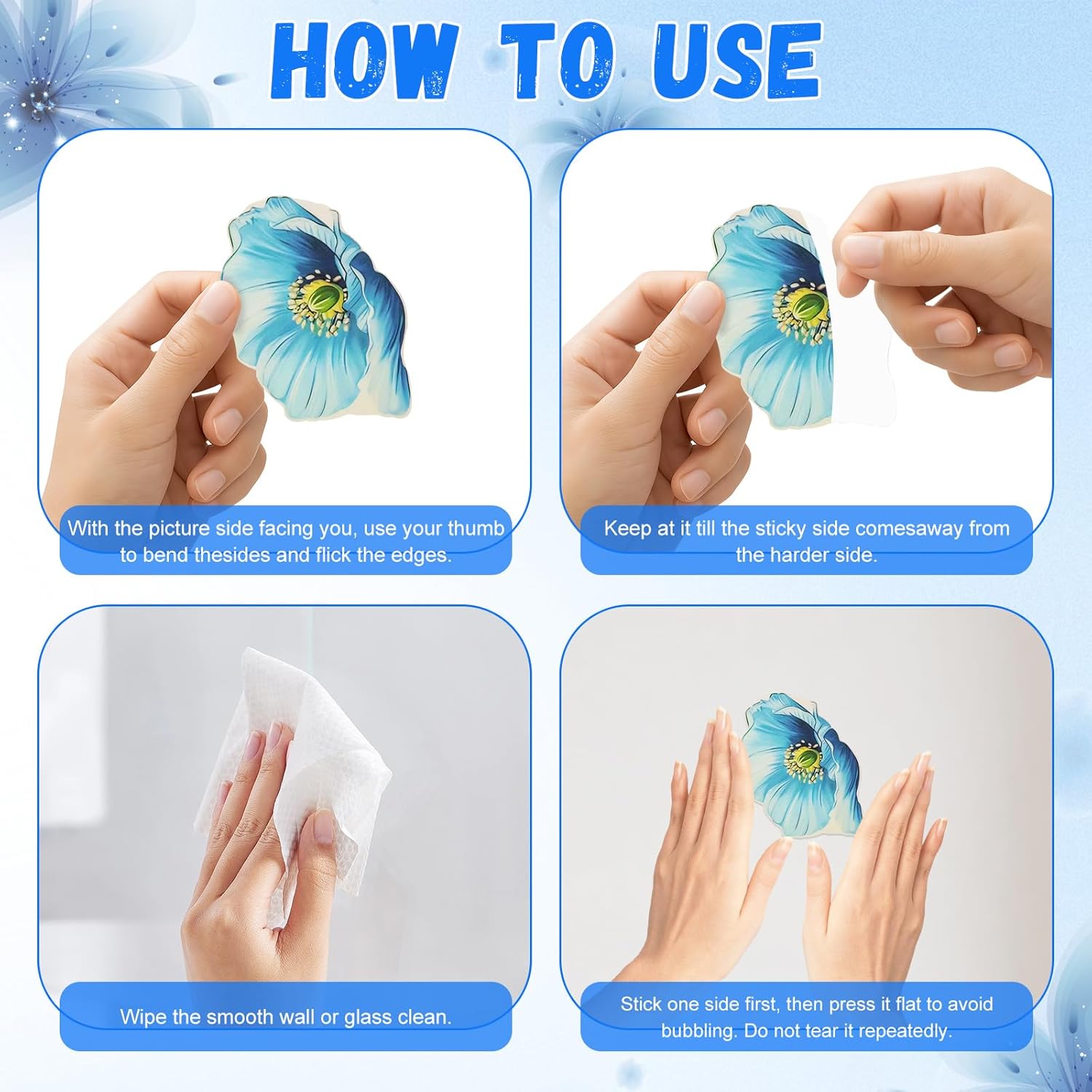 • NOTE:Butterfly wall stickers are suitable for smooth latex painted walls, ceramic tiles, glass, and flat wood/metal surfaces. They are not suitable for rough surfaces (such as diatom mud and cultured stone), flaking surfaces, or damp areas. Avoid applying these stickers to damp surfaces, as they can easily break. If applied to rough surfaces, the wall may flake.