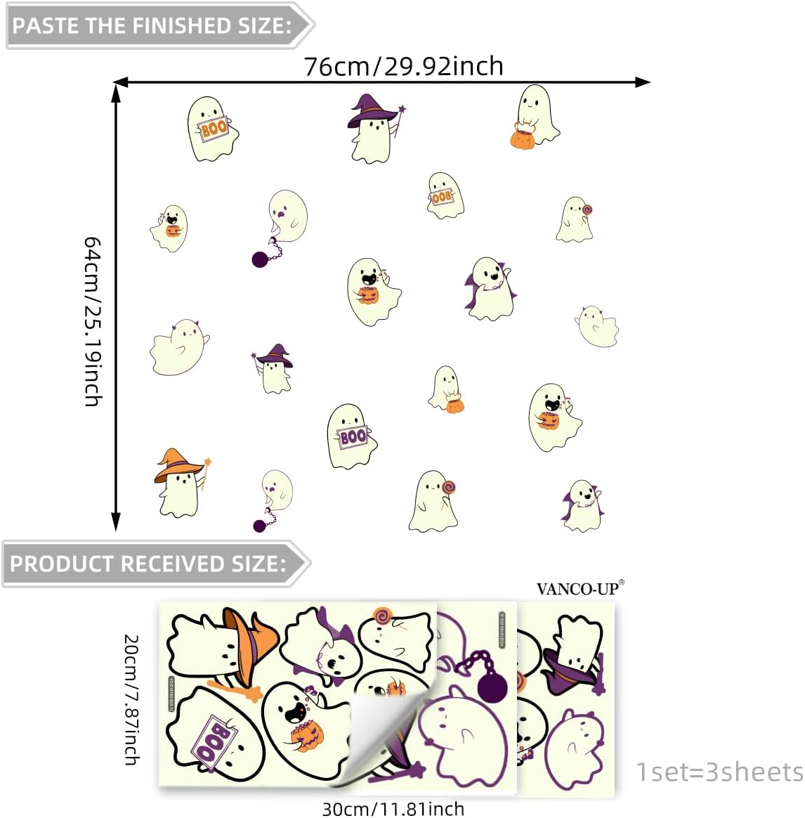 Glow in The Dark Halloween Window Clings Luminous Pumpkin Ghost Window Stickers Decor for Halloween Theme Party Decorations