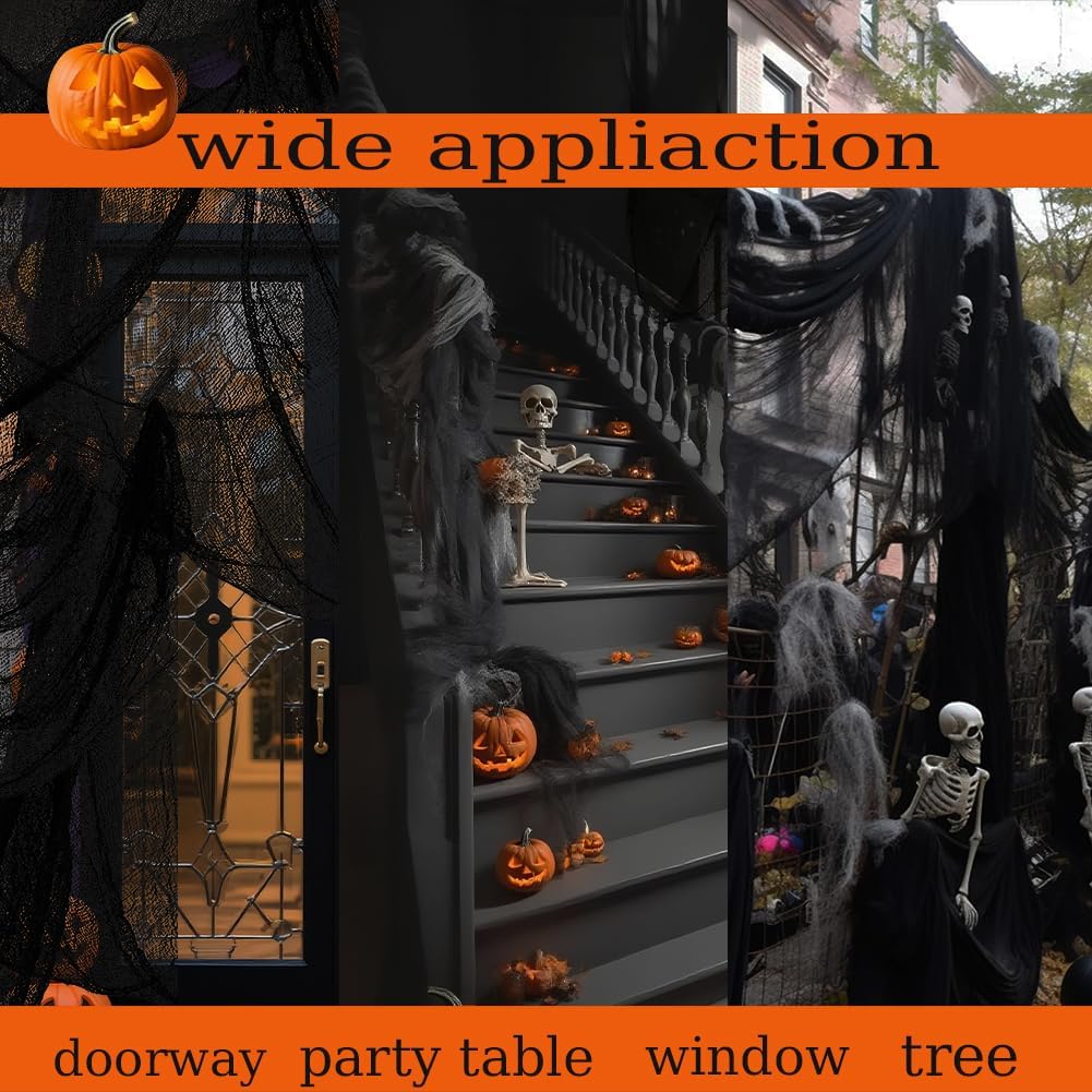 • 👻 GIANT SIZE FOR DRAMATIC IMPACT At 48 x 315 inches, this massive cheesecloth covers large spaces effortlessly, making it perfect for outdoor yards, indoor walls, haunted houses, and Halloween party backdrops.